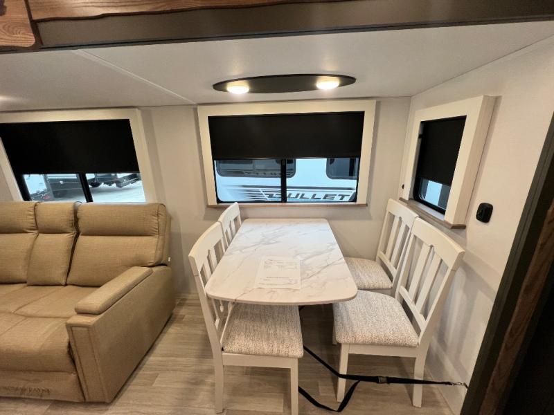 With any Keystone Bullet travel trailer you can experience lightweight camping with style! The interior design and functionality will impress you, along with the durable construction materials. Each is built with Hyper Deck RV flooring that is stronger, lighter and more resilient than traditional wood laminated flooring. The Girard tankless water heater is a feature you won't want to camp without, and the Blade high-performance air flow system will help keep you comfortable all summer long. It will be so easy to enjoy life at the campground since each model includes residential durable Beauflor vinyl flooring, deluxe night shades, solid surface seamless kitchen countertops, and many more comforts!