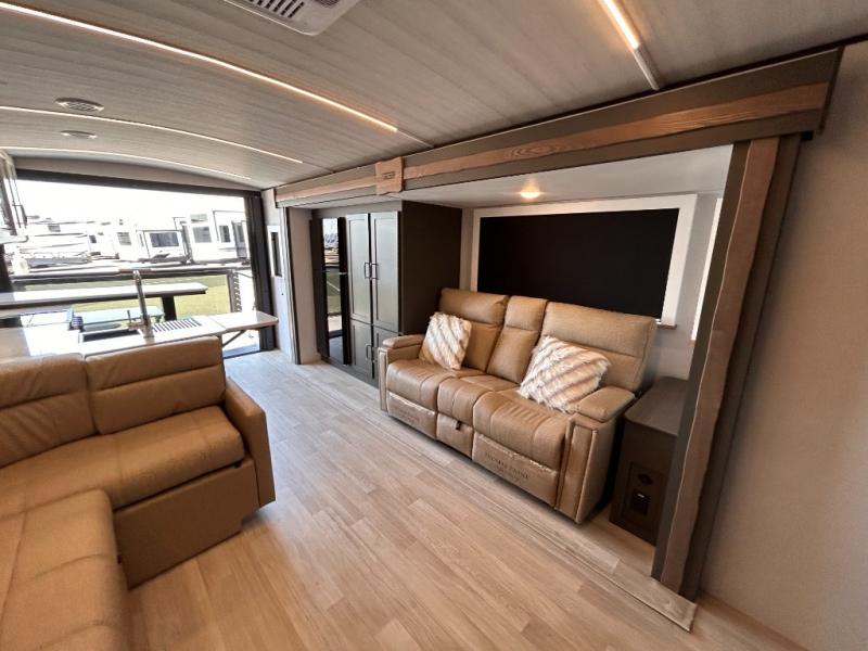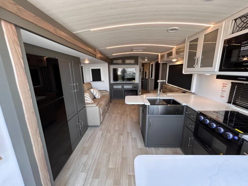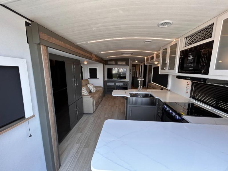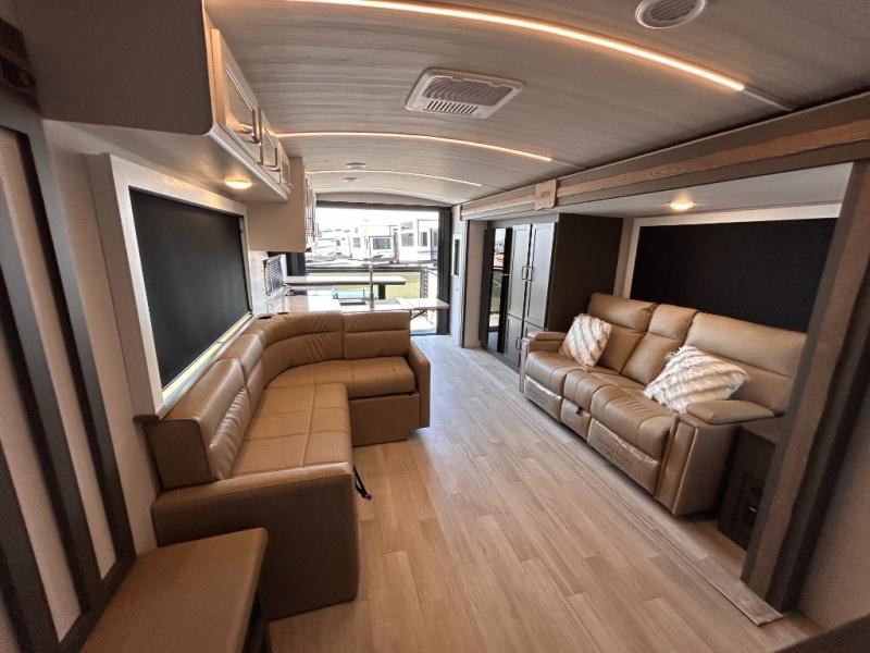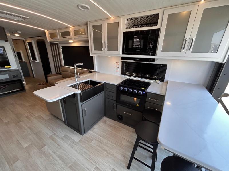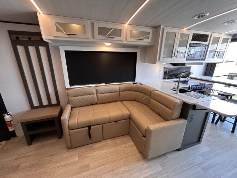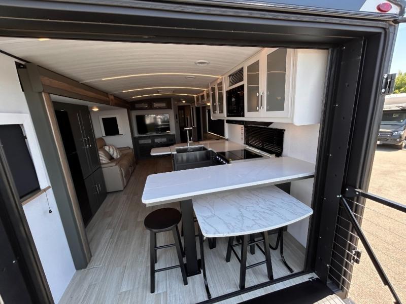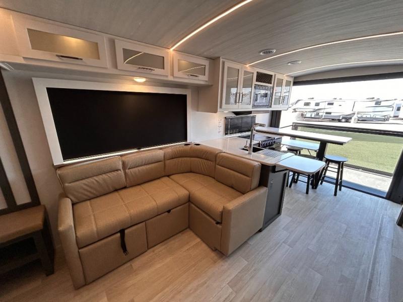 Rear Kitchen with Balcony / L-Shaped Sectional Sofa / Theater Seating / King Bed / 220 W Solar Panel / 2 AC!!