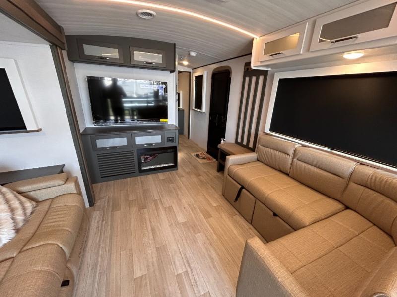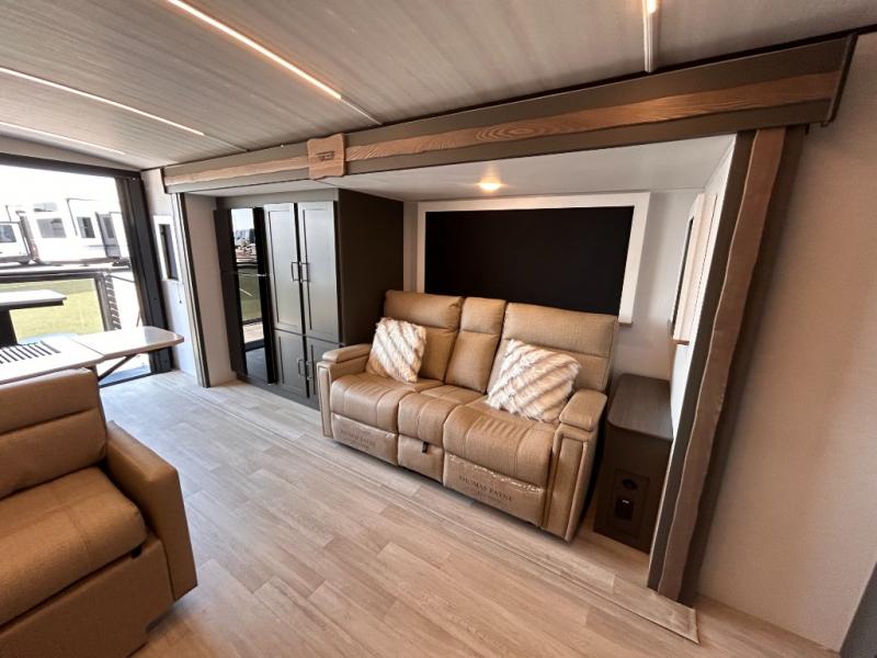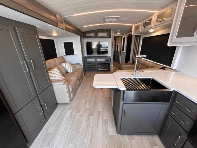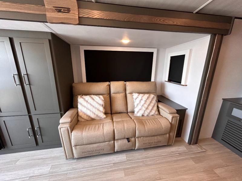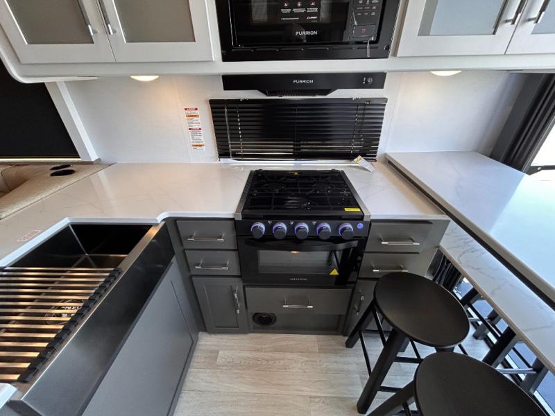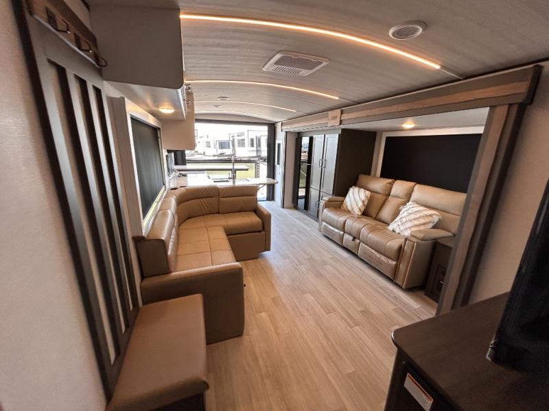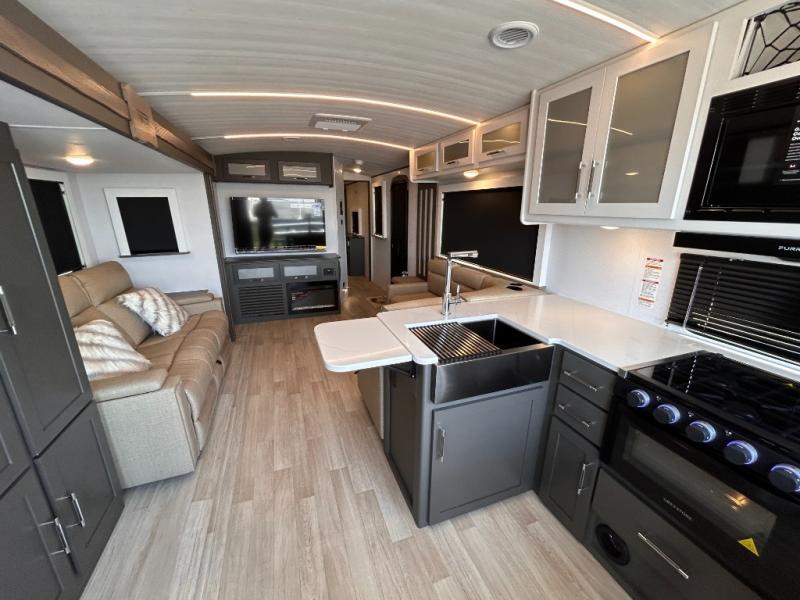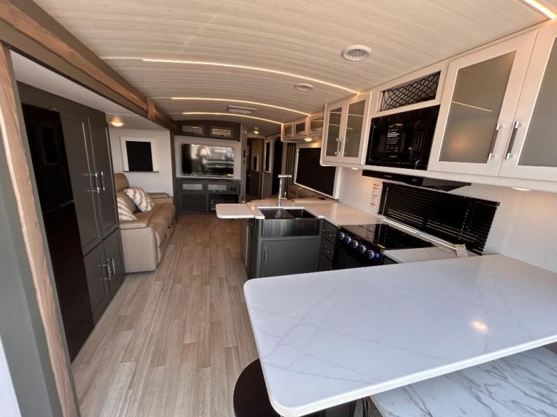 Rear Kitchen with Balcony / L-Shaped Sectional Sofa / Theater Seating / King Bed / 220 W Solar Panel / 2 AC!!