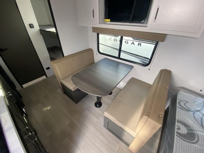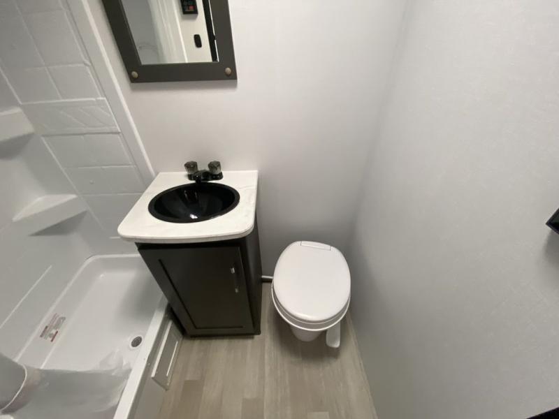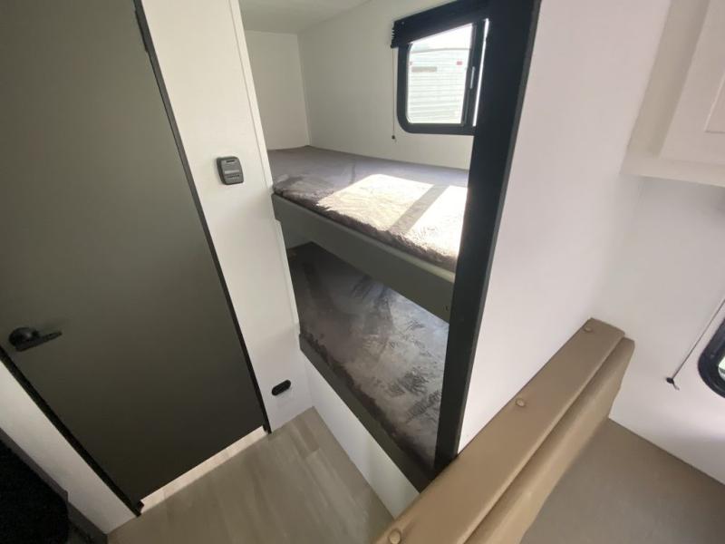 Trips to the Grand Canyon are made comfortable in this travel trailer for five. You will enjoy your own queen bed up front with a wardrobe for your clothes. The kids or your guests will love the bunk beds right next to the full bath, and there is also a booth dinette that can serve as both dining and sleeping space. Prepare all your meals in the microwave oven or use the cooktop, and the 8 cu. ft. refrigerator will be perfect for all your perishables.