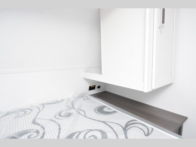 The front queen bed offers privacy with a handy curtain, perfect for getting dressed or enjoying a quiet moment. Stay organized with dual nightstands and bedside wardrobes to keep your essentials close by.