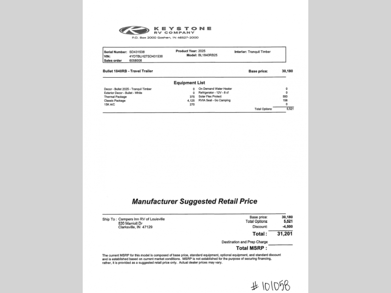 New 2025 Keystone RV Bullet Classic 1840RB Travel Trailer