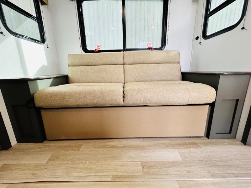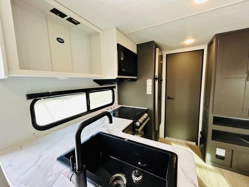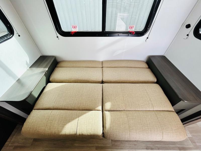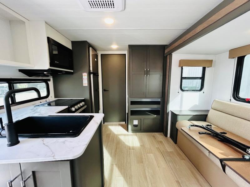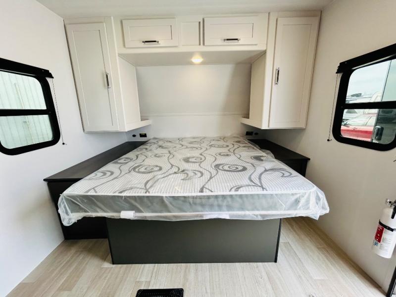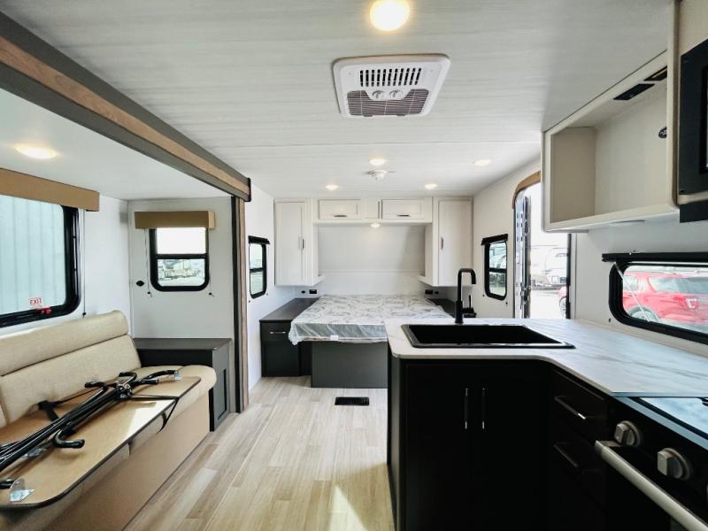 Camping trips just got sweeter in this travel trailer for three! There is a jack knife sofa slide out that will provide additional interior space, along with sleeping space for a guest. The front queen bed includes a privacy curtain when you need to get dressed, and there are dual nightstands to keep your things organized. A full kitchen will let you cook meals each day, and the spacious full rear bath means you won't have to use the camp's facilities in the middle of the night!