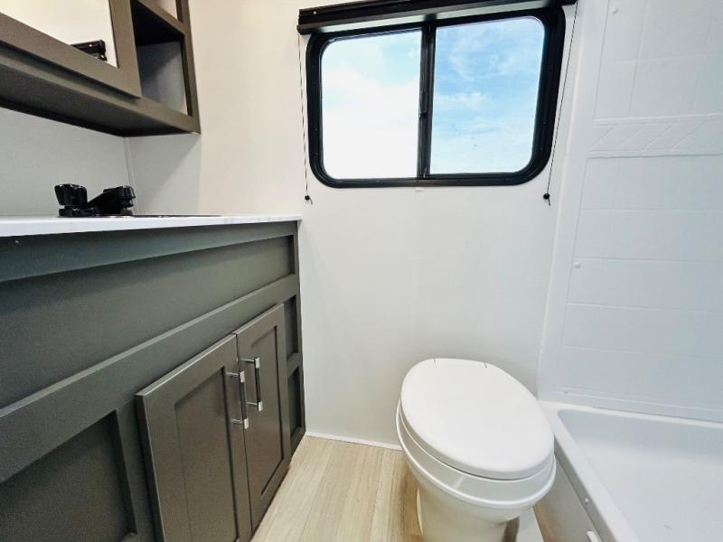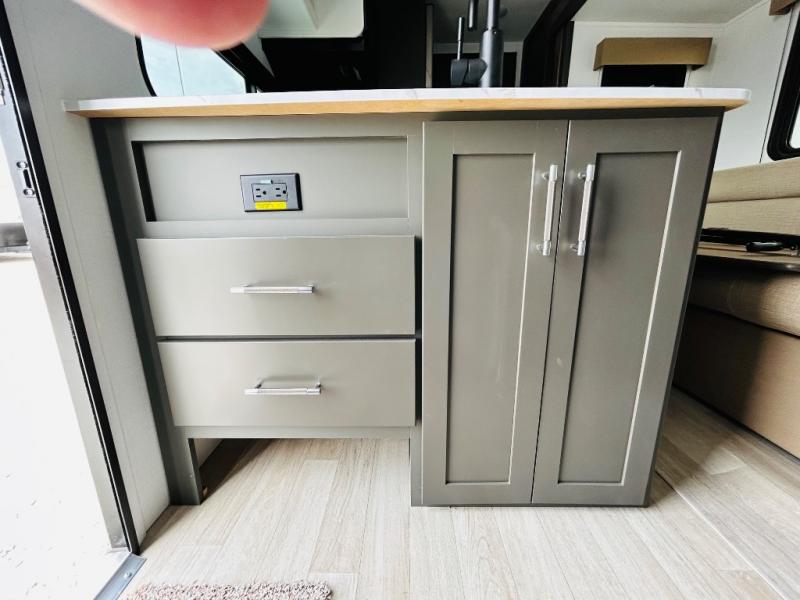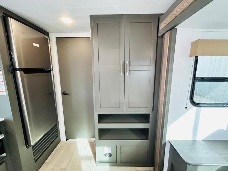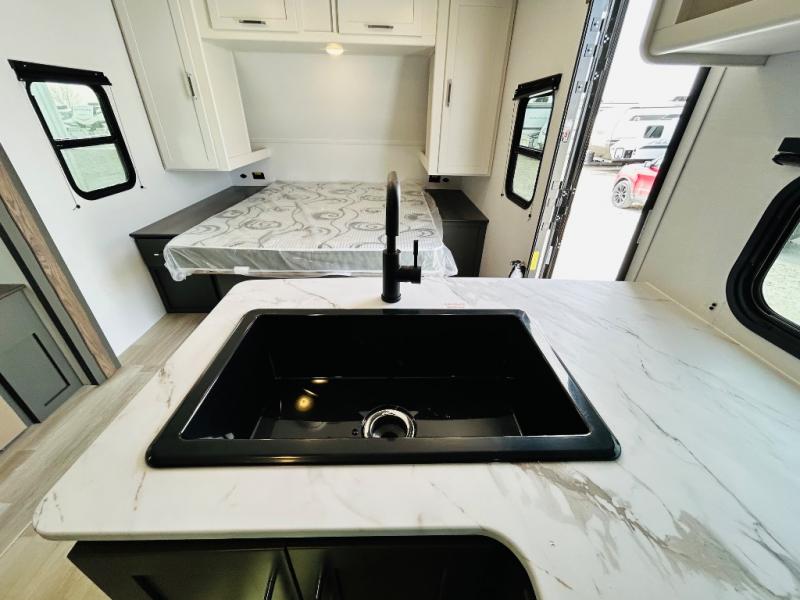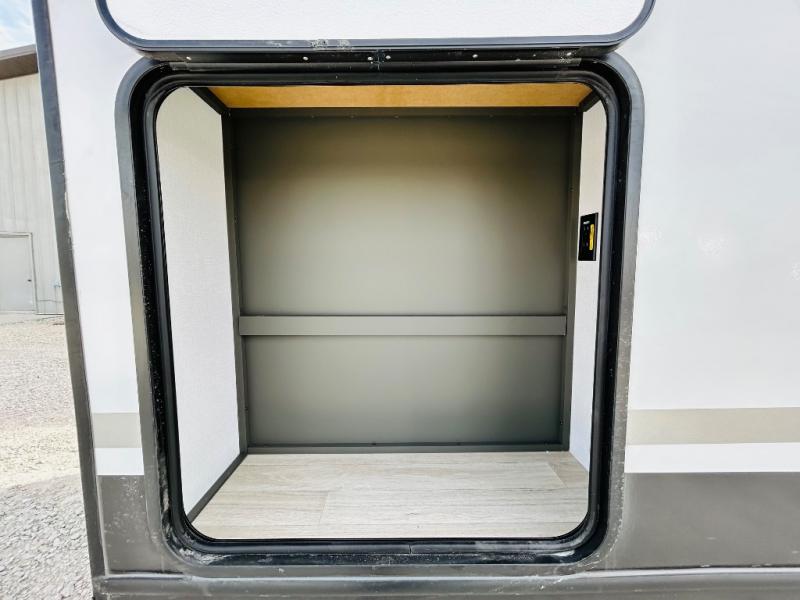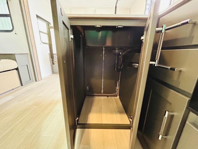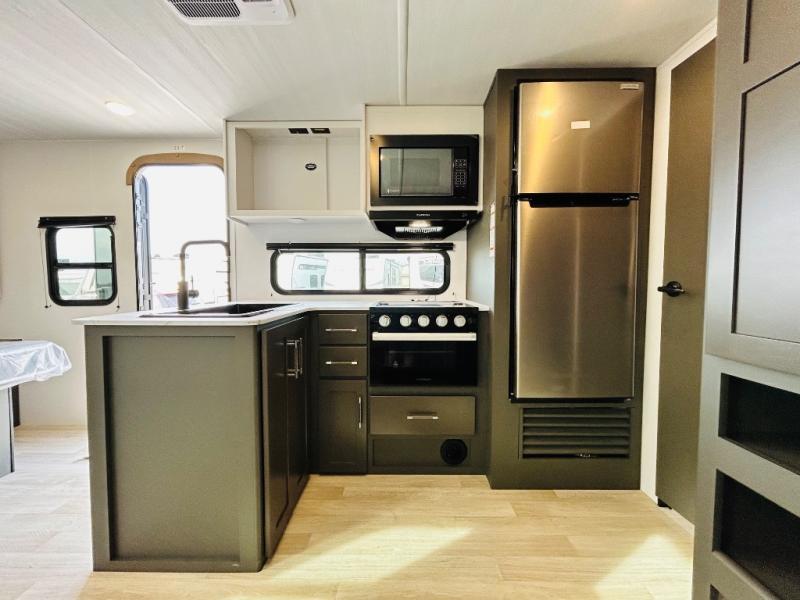 Camping trips just got sweeter in this travel trailer for three! There is a jack knife sofa slide out that will provide additional interior space, along with sleeping space for a guest. The front queen bed includes a privacy curtain when you need to get dressed, and there are dual nightstands to keep your things organized. A full kitchen will let you cook meals each day, and the spacious full rear bath means you won't have to use the camp's facilities in the middle of the night!