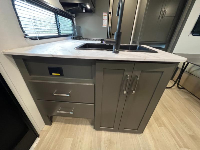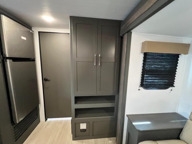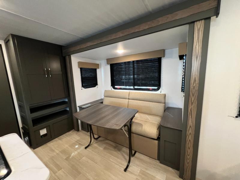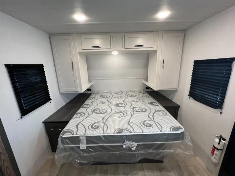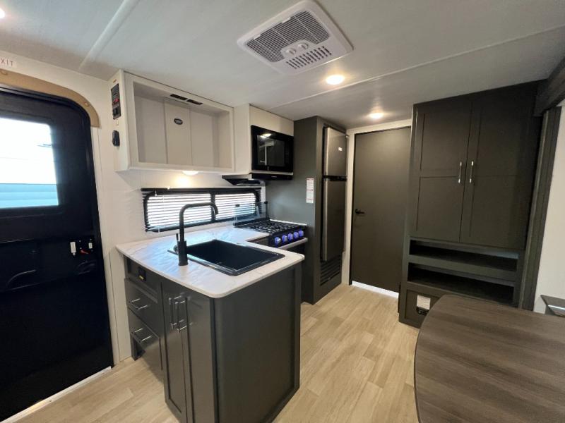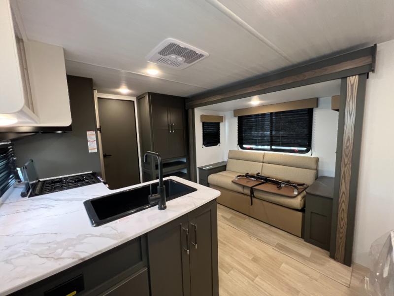 Camping trips just got sweeter in this travel trailer for three! There is a jack knife sofa slide out that will provide additional interior space, along with sleeping space for a guest. The front queen bed includes a privacy curtain when you need to get dressed, and there are dual nightstands to keep your things organized. A full kitchen will let you cook meals each day, and the spacious full rear bath means you won't have to use the camp's facilities in the middle of the night!