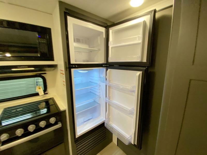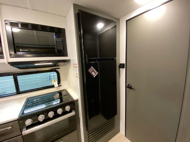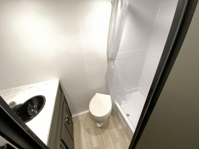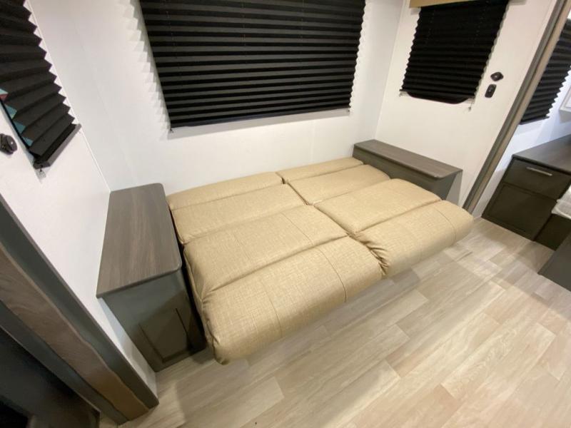 Camping trips just got sweeter in this travel trailer for three! There is a jack knife sofa slide out that will provide additional interior space, along with sleeping space for a guest. The front queen bed includes a privacy curtain when you need to get dressed, and there are dual nightstands to keep your things organized. A full kitchen will let you cook meals each day, and the spacious full rear bath means you won't have to use the camp's facilities in the middle of the night!