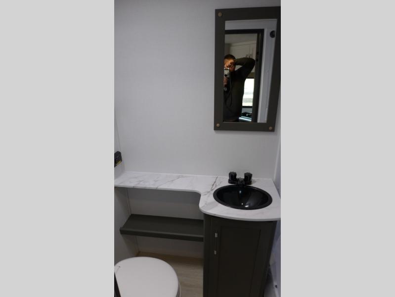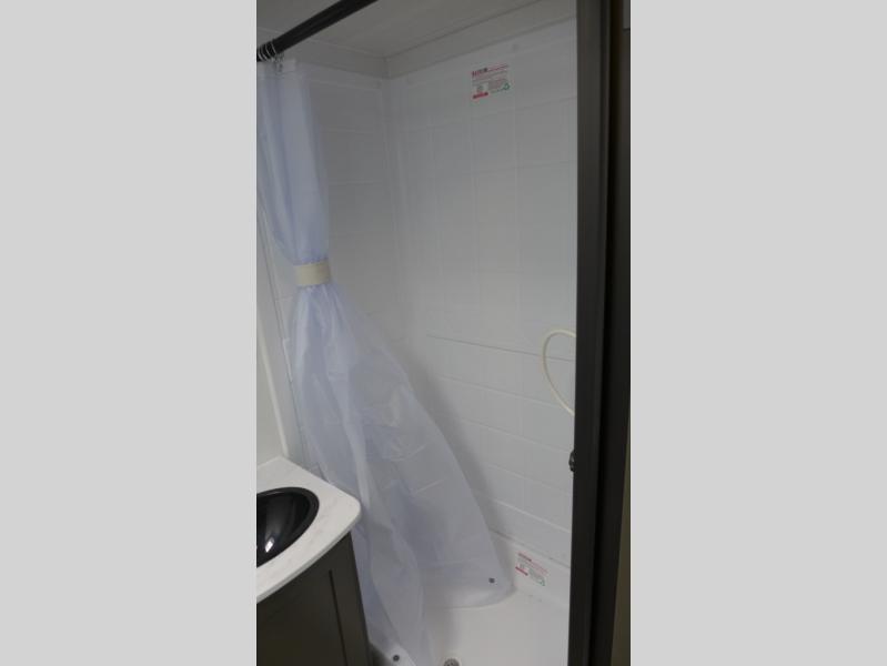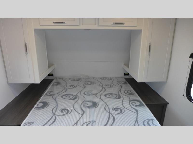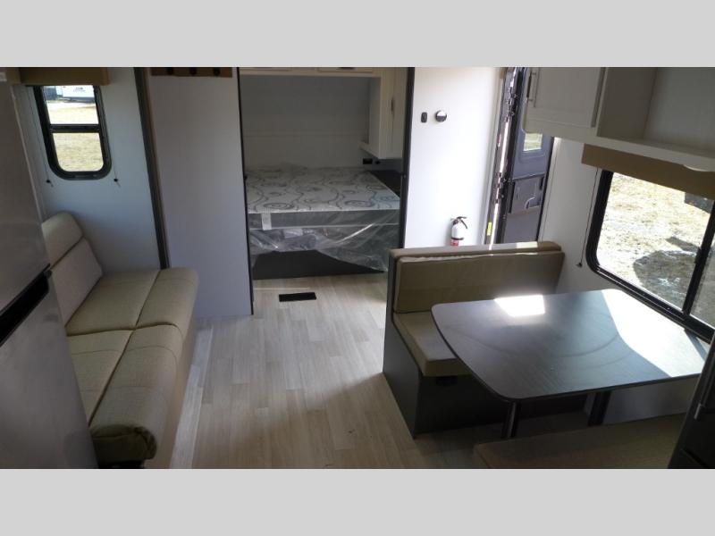This travel trailer with a large slide out is sure to meet all your needs. When you arrive at the campground, you can put out the patio awning, unload the pass-thru storage, and relax in your camp chairs. The cooktop and microwave oven in the rear corner kitchen will let you make lunch for everyone, and the 8 cu. ft. refrigerator and pantry will help you keep food stocked. You will love having a queen bed to sleep on each night, and the booth dinette and jack knife sofa provide seating and sleeping space for guests!