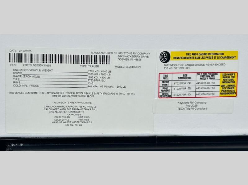 New 2025 Keystone RV Bullet Classic 2840QB Travel Trailer