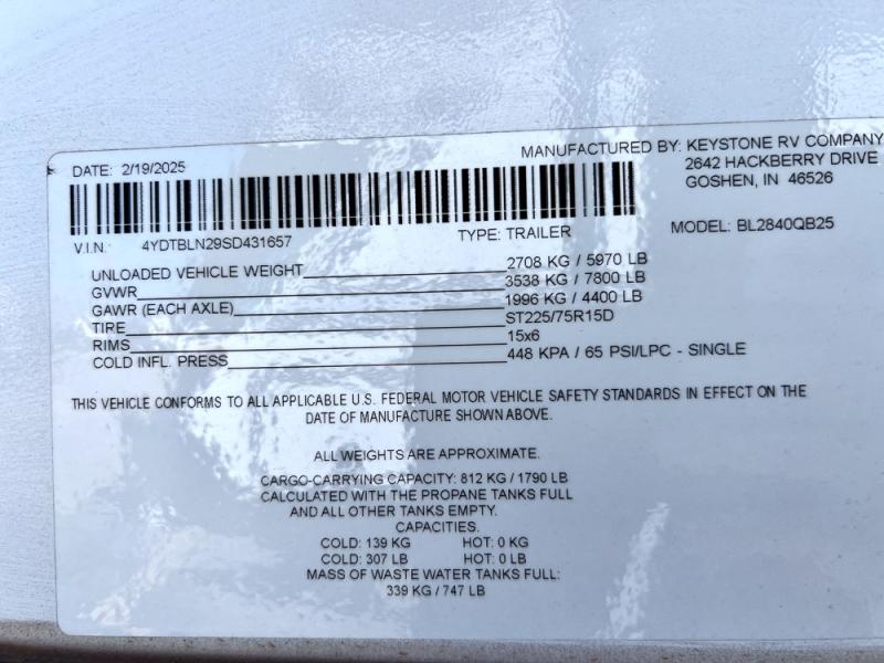 New 2025 Keystone RV Bullet Classic 2840QB Travel Trailer