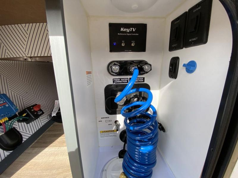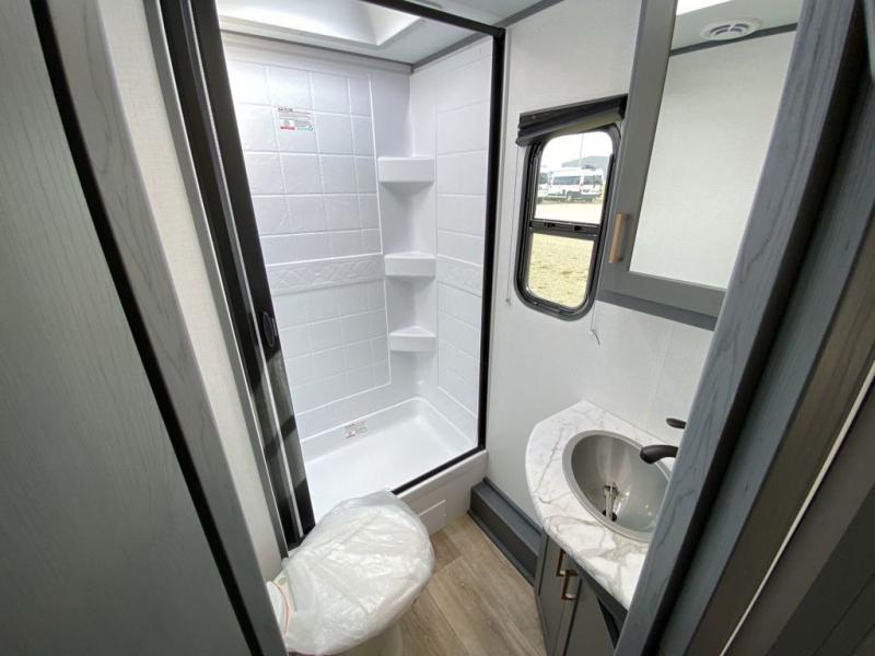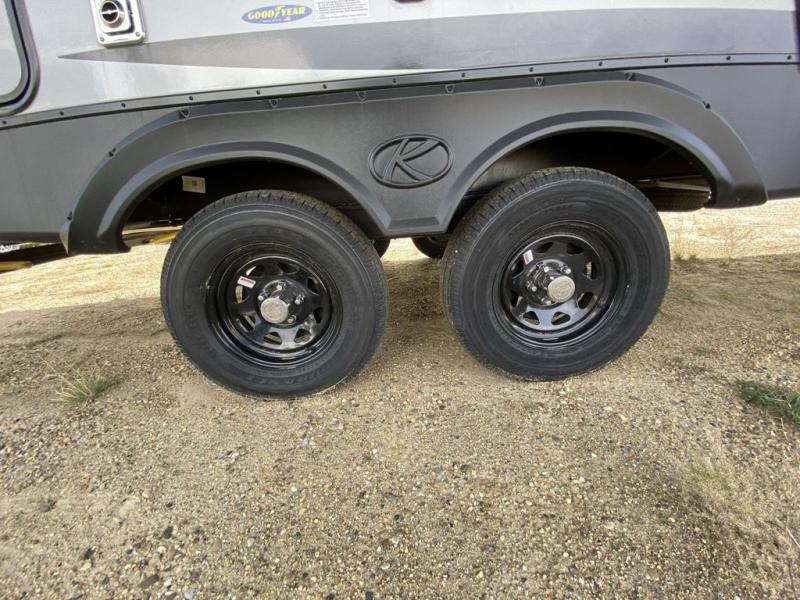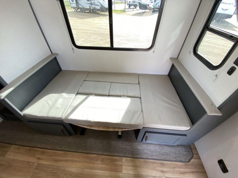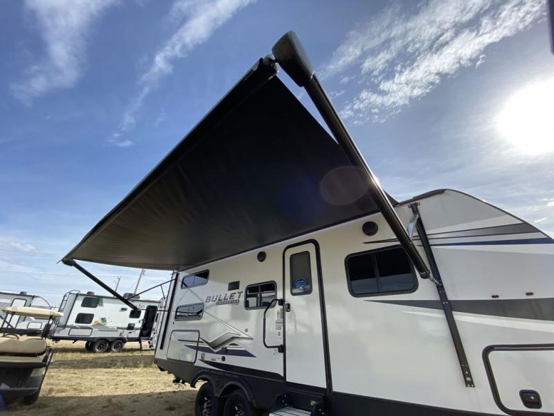 The Bullet Crossfire by Keystone are the perfect lightweight travel travel for rookie campers to seasoned RVers! Each one is built with a one-piece polypropylene underbelly, a fully walkable roof, and a high impact thermoset resin painted front cap for added durability. There is also a Dexter Torsion axle rubber ride suspension and Goodyear Endurance tires for a smooth tow plus a power tongue jack and power stabilizer jacks for easy set up. The interior will have you feeling right at home with deluxe night shades, updated Tranquil Timber decor, residential Beauflor vinyl flooring, and seamless kitchen countertops.
