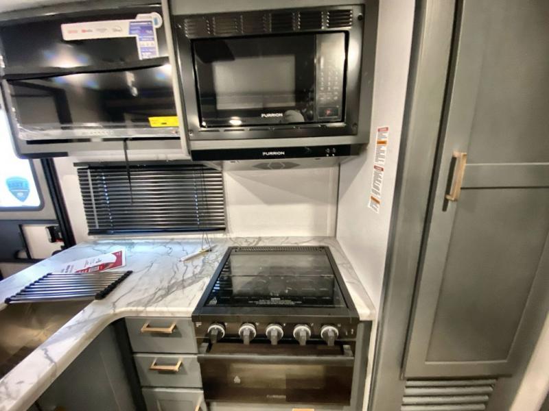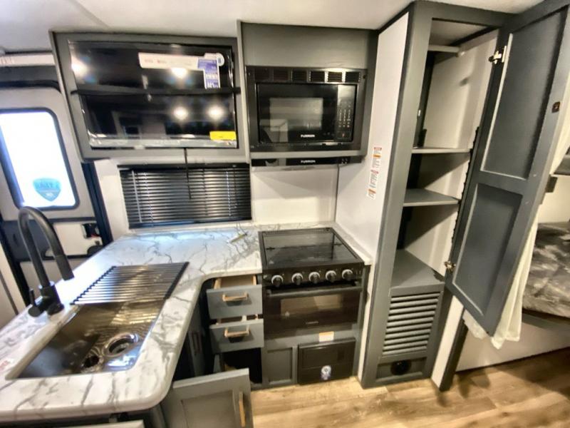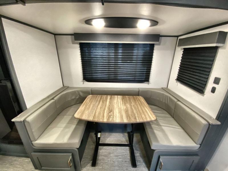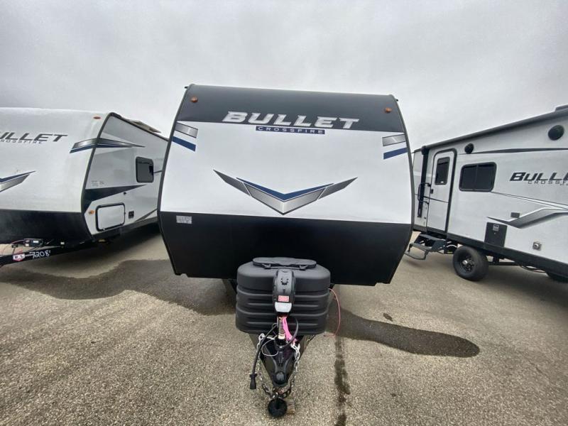 The Bullet Crossfire by Keystone are the perfect lightweight travel travel for rookie campers to seasoned RVers! Each one is built with a one-piece polypropylene underbelly, a fully walkable roof, and a high impact thermoset resin painted front cap for added durability. There is also a Dexter Torsion axle rubber ride suspension and Goodyear Endurance tires for a smooth tow plus a power tongue jack and power stabilizer jacks for easy set up. The interior will have you feeling right at home with deluxe night shades, updated Tranquil Timber decor, residential Beauflor vinyl flooring, and seamless kitchen countertops.