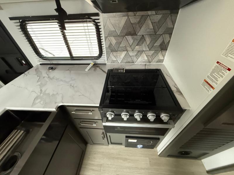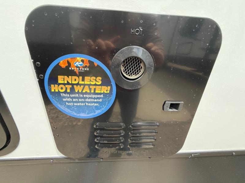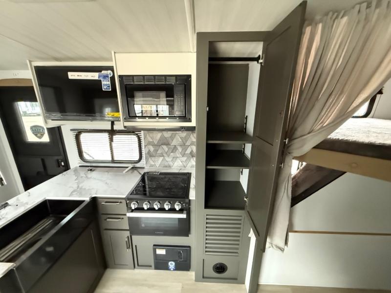 The Bullet Crossfire by Keystone are the perfect lightweight travel travel for rookie campers to seasoned RVers! Each one is built with a one-piece polypropylene underbelly, a fully walkable roof, and a high impact thermoset resin painted front cap for added durability. There is also a Dexter Torsion axle rubber ride suspension and Goodyear Endurance tires for a smooth tow plus a power tongue jack and power stabilizer jacks for easy set up. The interior will have you feeling right at home with deluxe night shades, updated Tranquil Timber decor, residential Beauflor vinyl flooring, and seamless kitchen countertops.