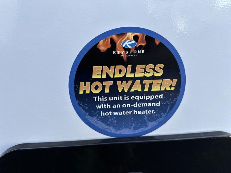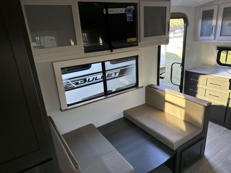 The Bullet Crossfire by Keystone are the perfect lightweight travel travel for rookie campers to seasoned RVers! Each one is built with a one-piece polypropylene underbelly, a fully walkable roof, and a high impact thermoset resin painted front cap for added durability. There is also a Dexter Torsion axle rubber ride suspension and Goodyear Endurance tires for a smooth tow plus a power tongue jack and power stabilizer jacks for easy set up. The interior will have you feeling right at home with deluxe night shades, updated Tranquil Timber decor, residential Beauflor vinyl flooring, and seamless kitchen countertops.