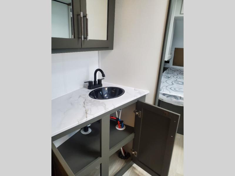 The Bullet Crossfire by Keystone are the perfect lightweight travel travel for rookie campers to seasoned RVers! Each one is built with a one-piece polypropylene underbelly, a fully walkable roof, and a high impact thermoset resin painted front cap for added durability. There is also a Dexter Torsion axle rubber ride suspension and Goodyear Endurance tires for a smooth tow plus a power tongue jack and power stabilizer jacks for easy set up. The interior will have you feeling right at home with deluxe night shades, updated Tranquil Timber decor, residential Beauflor vinyl flooring, and seamless kitchen countertops.