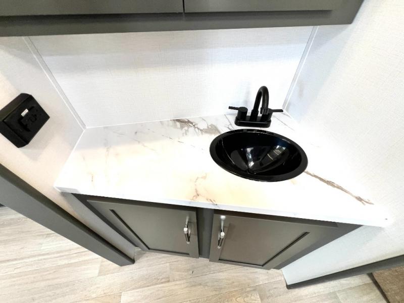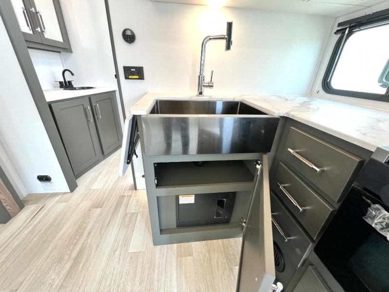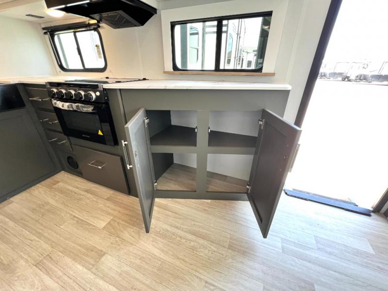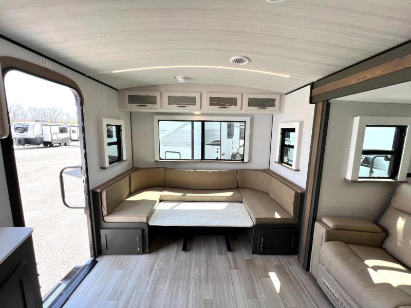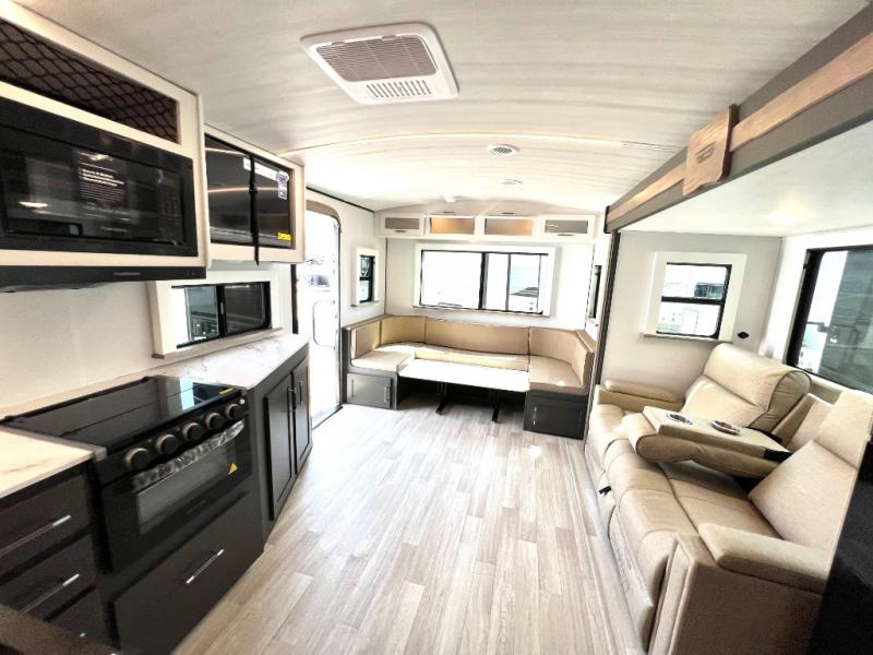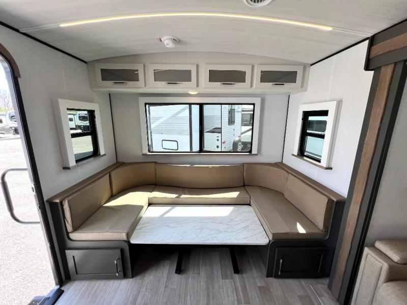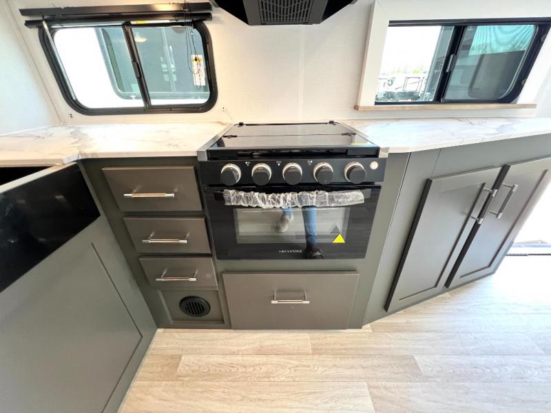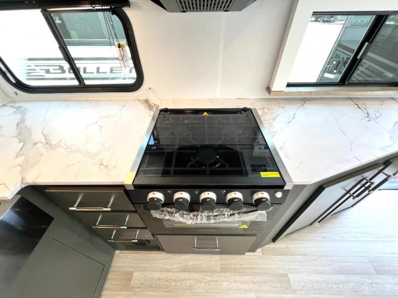The Bullet Crossfire by Keystone are the perfect lightweight travel travel for rookie campers to seasoned RVers! Each one is built with a one-piece polypropylene underbelly, a fully walkable roof, and a high impact thermoset resin painted front cap for added durability. There is also a Dexter Torsion axle rubber ride suspension and Goodyear Endurance tires for a smooth tow plus a power tongue jack and power stabilizer jacks for easy set up. The interior will have you feeling right at home with deluxe night shades, updated Tranquil Timber decor, residential Beauflor vinyl flooring, and seamless kitchen countertops.
