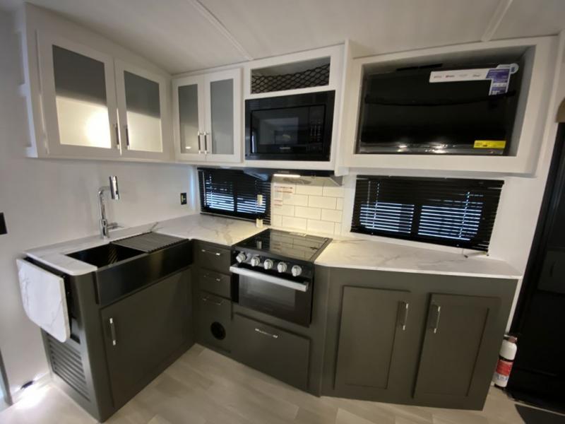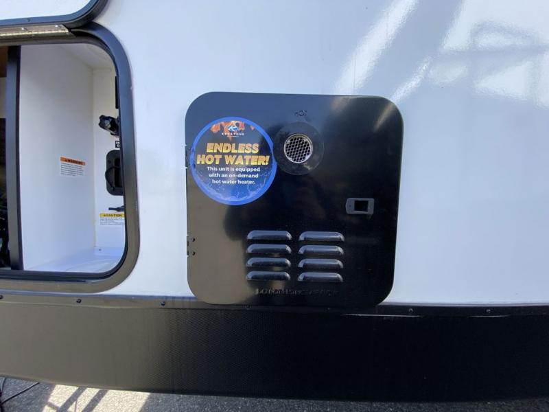 The Bullet Crossfire by Keystone are the perfect lightweight travel travel for rookie campers to seasoned RVers! Each one is built with a one-piece polypropylene underbelly, a fully walkable roof, and a high impact thermoset resin painted front cap for added durability. There is also a Dexter Torsion axle rubber ride suspension and Goodyear Endurance tires for a smooth tow plus a power tongue jack and power stabilizer jacks for easy set up. The interior will have you feeling right at home with deluxe night shades, updated Tranquil Timber decor, residential Beauflor vinyl flooring, and seamless kitchen countertops.