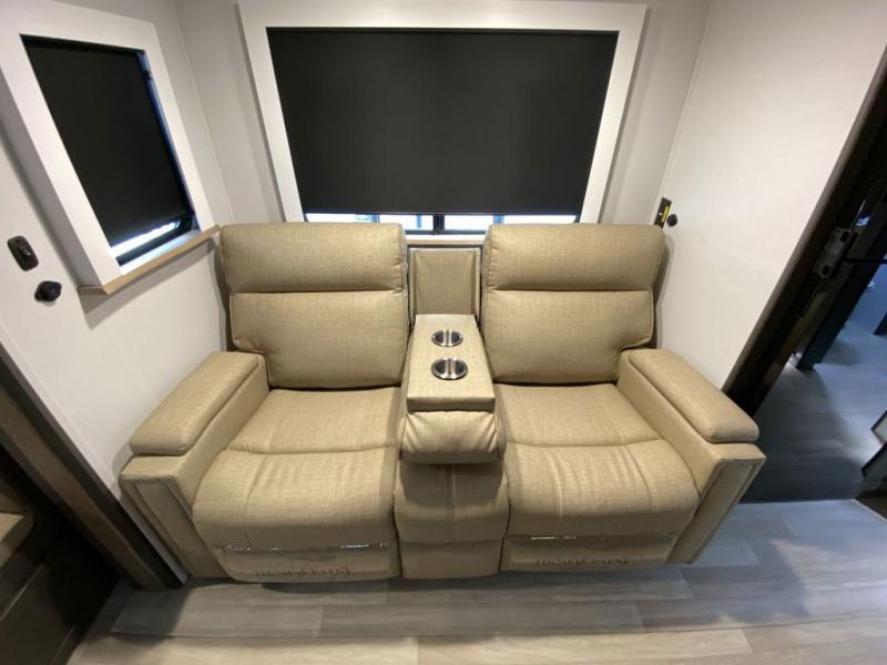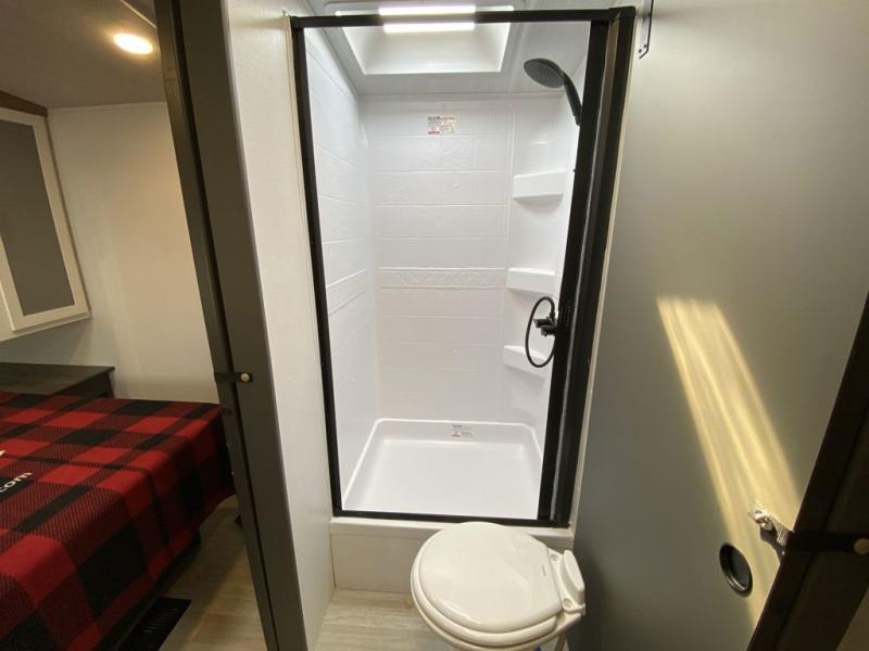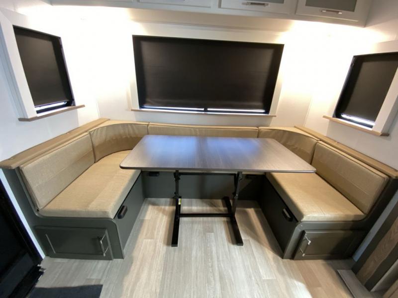 It won't be hard to find comfort in this dual entry travel trailer for six! You can enter in through the front private bedroom or the rear living area, and there is a large slide out for added space to move about. Spend your evenings on the tri-fold sofa across from the TV, around the U-shaped dinette, or outside under the 19' awning. You might even like to add the optional theater seating in place of the sofa for more comfort! The walk-through bath will provide easy access for everyone, and the front master bedroom is sure to feel just like home with its queen bed and dual wardrobes!