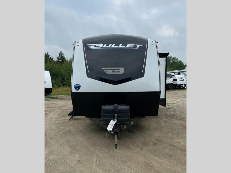 The Bullet Crossfire by Keystone are the perfect lightweight travel travel for rookie campers to seasoned RVers! Each one is built with a one-piece polypropylene underbelly, a fully walkable roof, and a high impact thermoset resin painted front cap for added durability. There is also a Dexter Torsion axle rubber ride suspension and Goodyear Endurance tires for a smooth tow plus a power tongue jack and power stabilizer jacks for easy set up. The interior will have you feeling right at home with deluxe night shades, updated Tranquil Timber decor, residential Beauflor vinyl flooring, and seamless kitchen countertops.