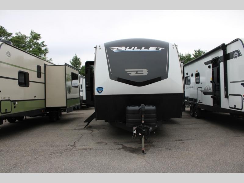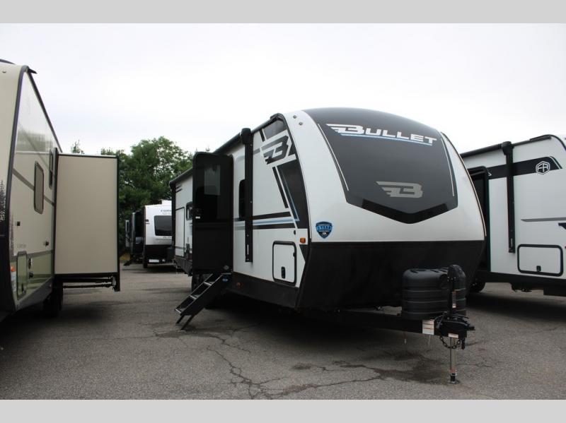The Bullet Crossfire by Keystone are the perfect lightweight travel travel for rookie campers to seasoned RVers! Each one is built with a one-piece polypropylene underbelly, a fully walkable roof, and a high impact thermoset resin painted front cap for added durability. There is also a Dexter Torsion axle rubber ride suspension and Goodyear Endurance tires for a smooth tow plus a power tongue jack and power stabilizer jacks for easy set up. The interior will have you feeling right at home with deluxe night shades, updated Tranquil Timber decor, residential Beauflor vinyl flooring, and seamless kitchen countertops.