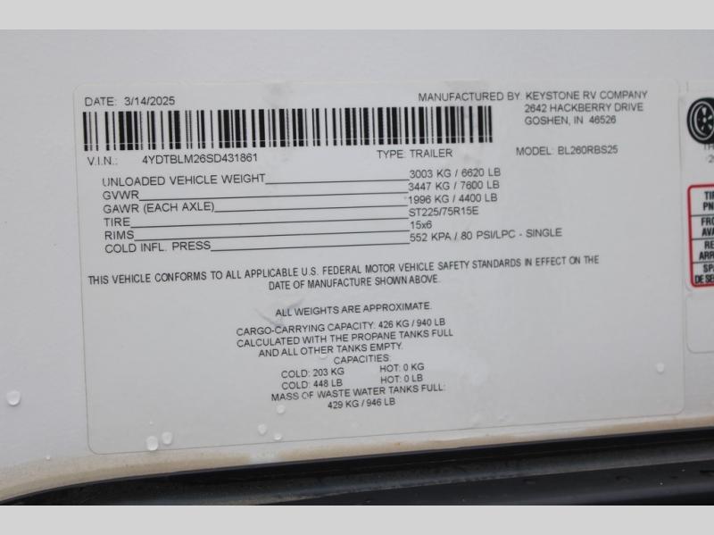 New 2025 Keystone RV Bullet Crossfire 260RBS Travel Trailer