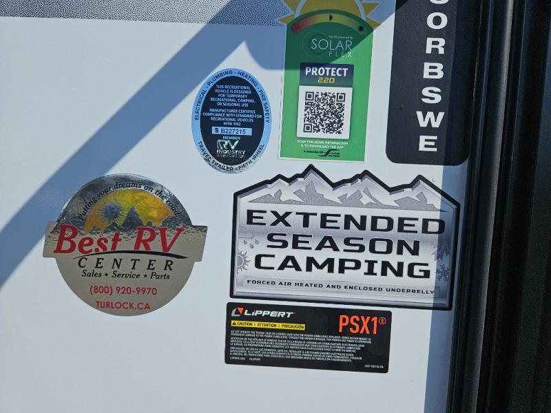 Rear Bathroom / Theater Seating / All Power Tongue Jack/ Outside Kitchen/ 200 W Solar Panel