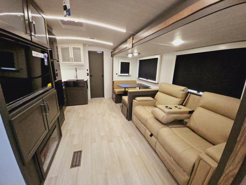 Rear Bathroom / Theater Seating / All Power Tongue Jack/ Outside Kitchen/ 200 W Solar Panel