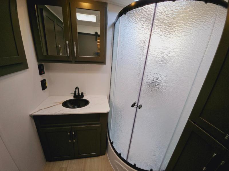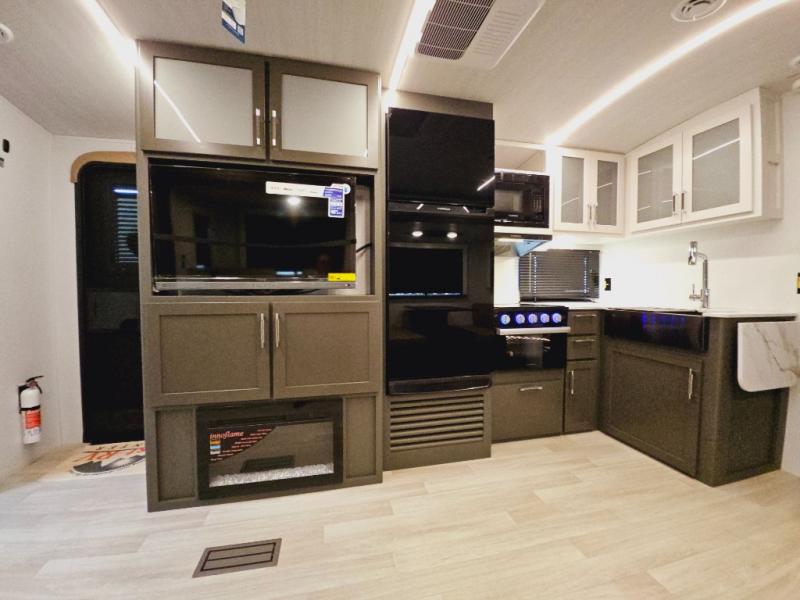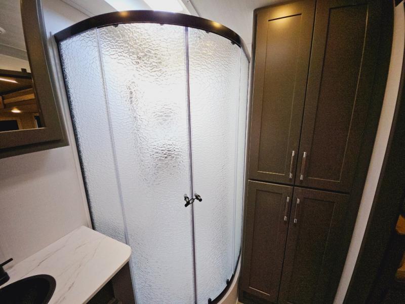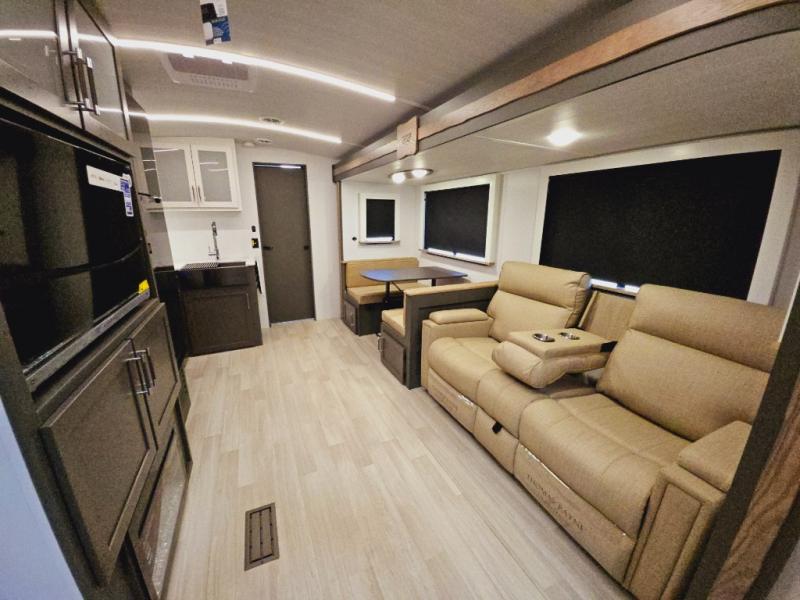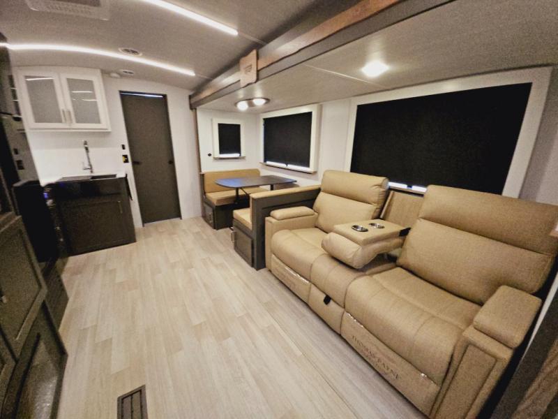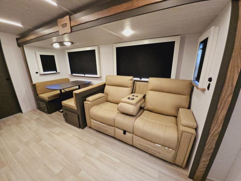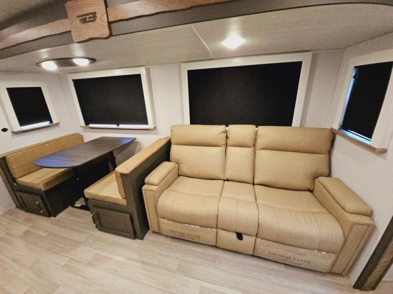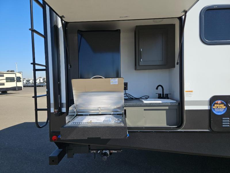 Rear Bathroom / Theater Seating / All Power Tongue Jack/ Outside Kitchen/ 200 W Solar Panel