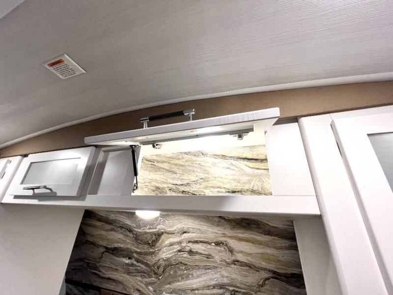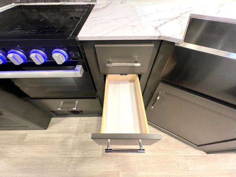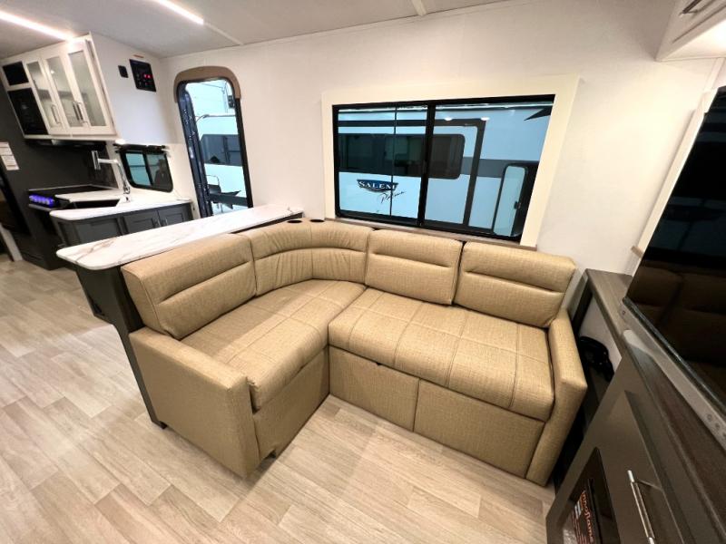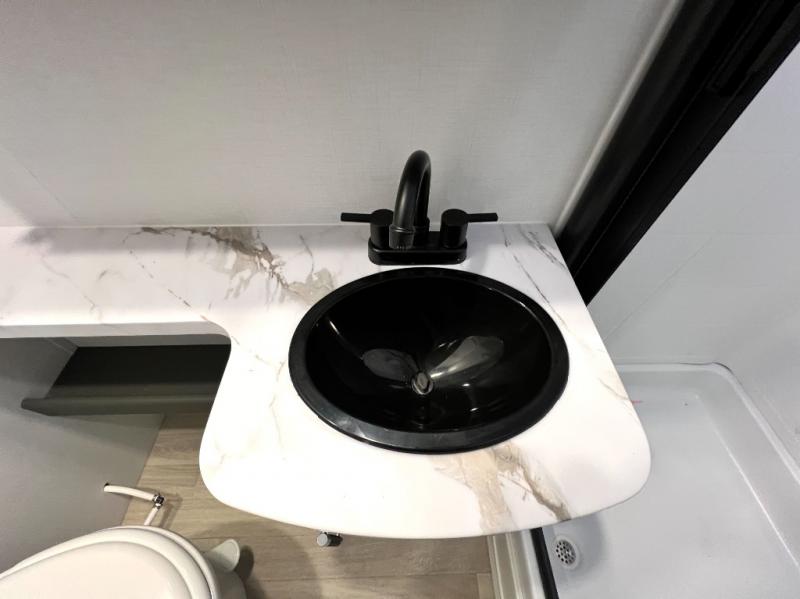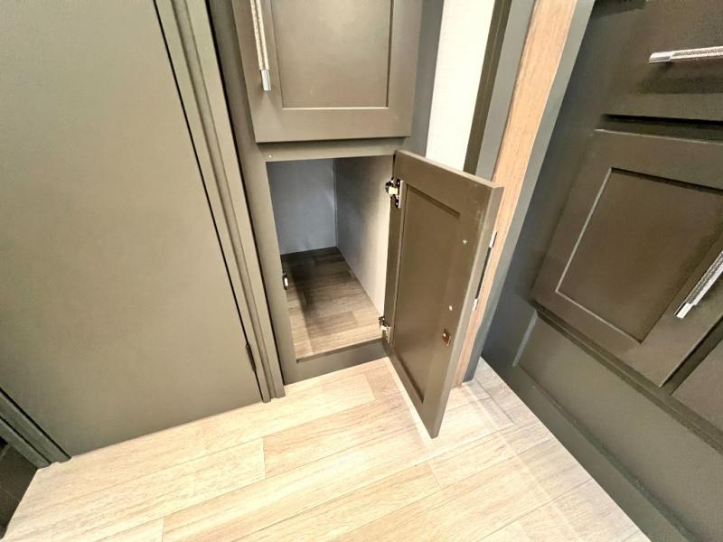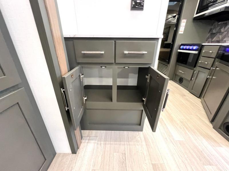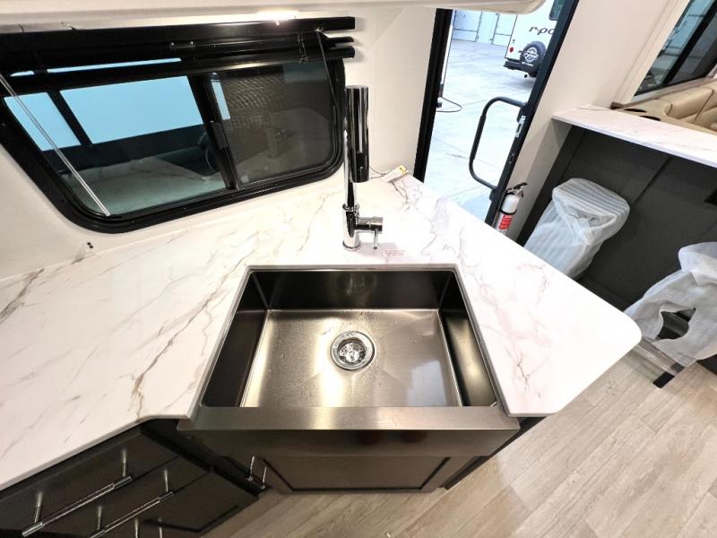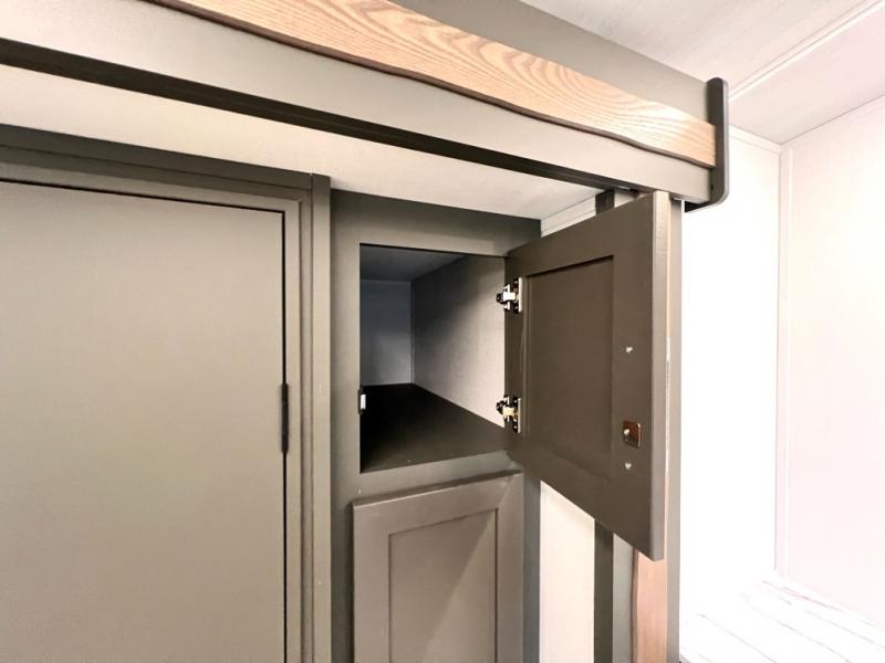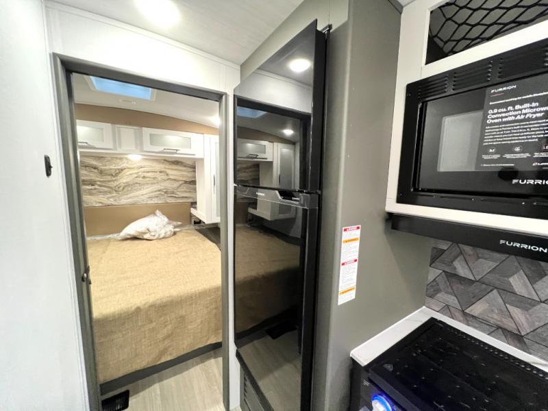 Inside, you’ll love the open layout with a rear entertainment center, perfect for movie nights or relaxing after a long hike. The private front bedroom features a queen bed for restful sleep, while the well-equipped kitchen — complete with 3-burner range, 12V refrigerator, and large pantry — keeps your family fueled for adventure.