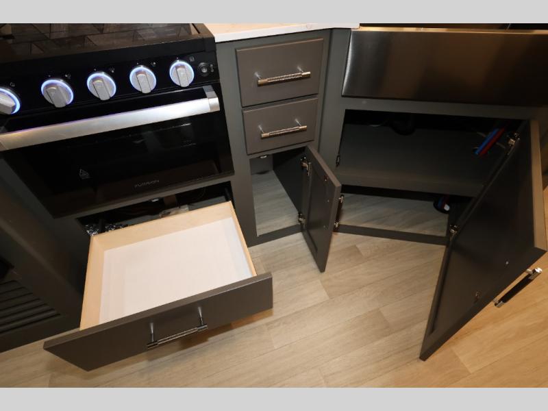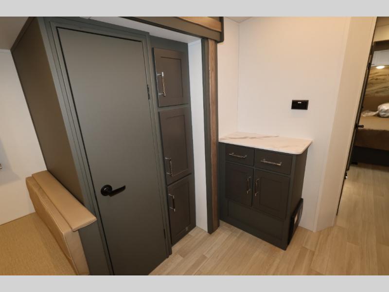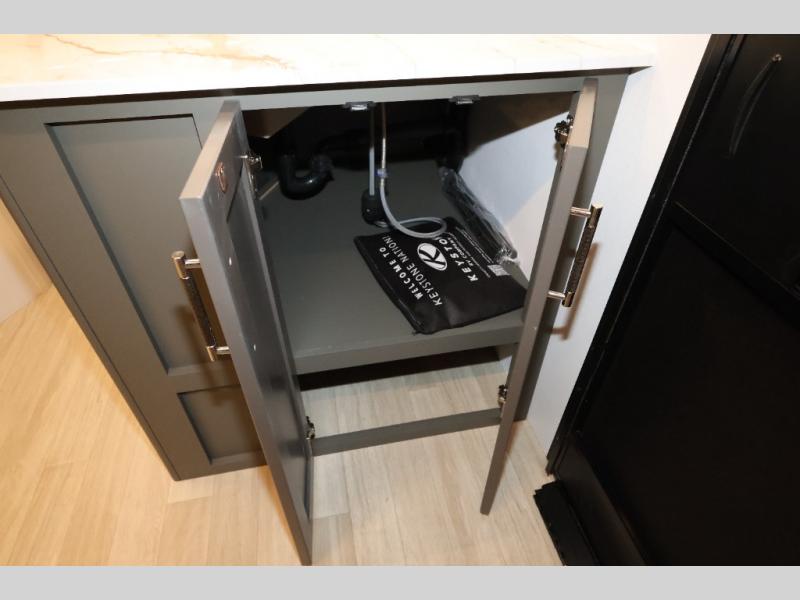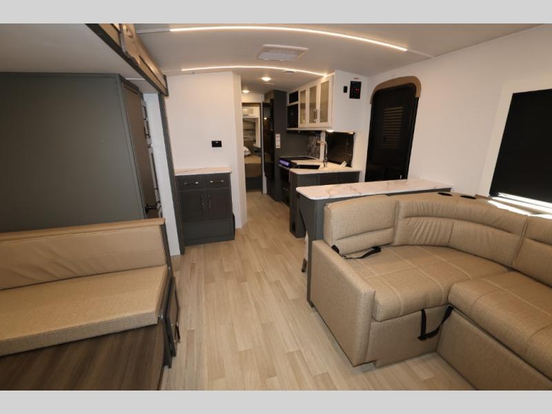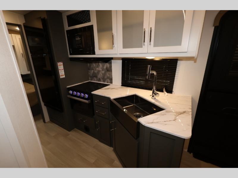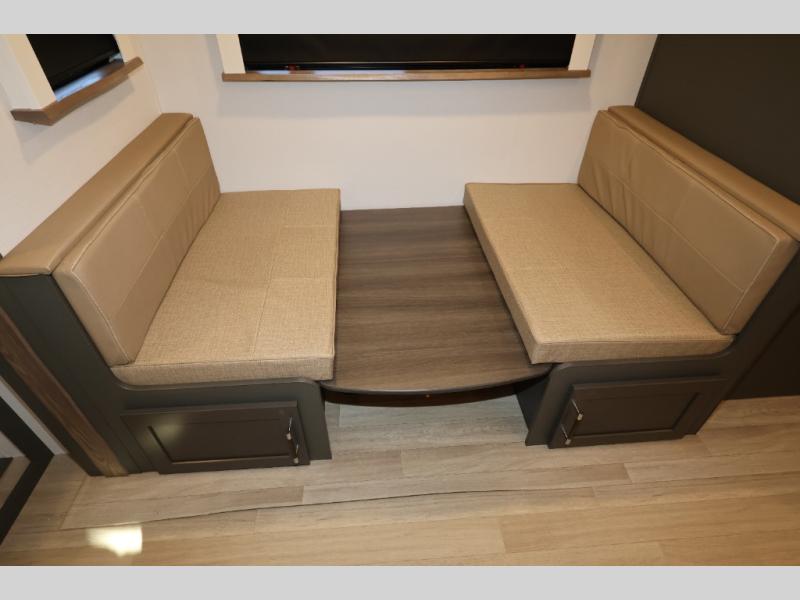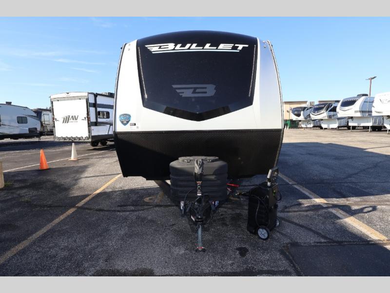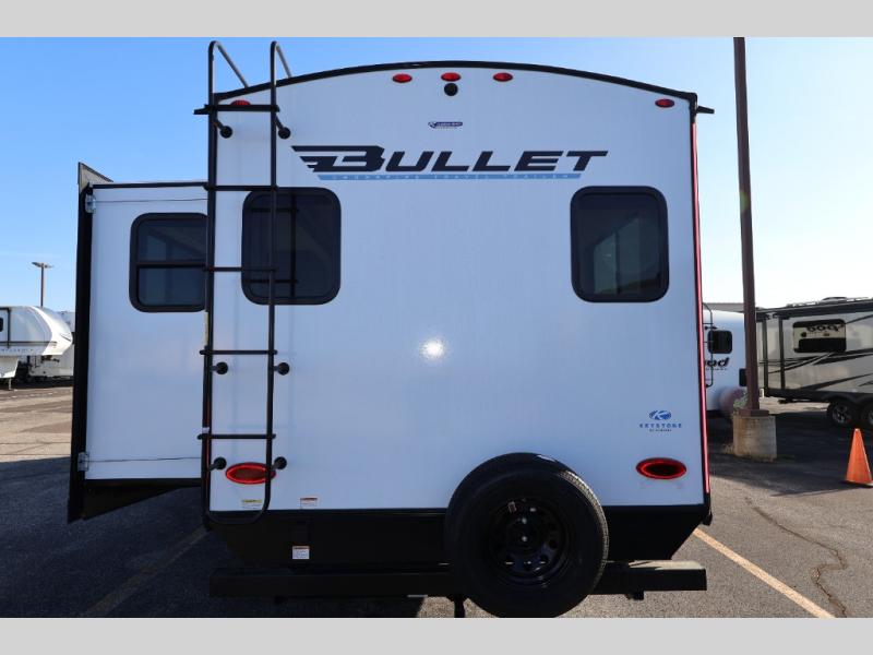 The Bullet Crossfire by Keystone are the perfect lightweight travel travel for rookie campers to seasoned RVers! Each one is built with a one-piece polypropylene underbelly, a fully walkable roof, and a high impact thermoset resin painted front cap for added durability. There is also a Dexter Torsion axle rubber ride suspension and Goodyear Endurance tires for a smooth tow plus a power tongue jack and power stabilizer jacks for easy set up. The interior will have you feeling right at home with deluxe night shades, updated Tranquil Timber decor, residential Beauflor vinyl flooring, and seamless kitchen countertops.