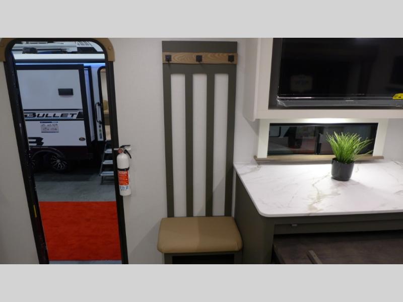 The Bullet Crossfire by Keystone are the perfect lightweight travel travel for rookie campers to seasoned RVers! Each one is built with a one-piece polypropylene underbelly, a fully walkable roof, and a high impact thermoset resin painted front cap for added durability. There is also a Dexter Torsion axle rubber ride suspension and Goodyear Endurance tires for a smooth tow plus a power tongue jack and power stabilizer jacks for easy set up. The interior will have you feeling right at home with deluxe night shades, updated Tranquil Timber decor, residential Beauflor vinyl flooring, and seamless kitchen countertops.
