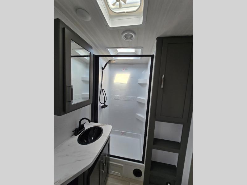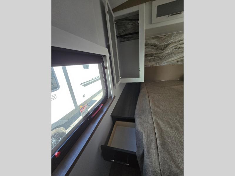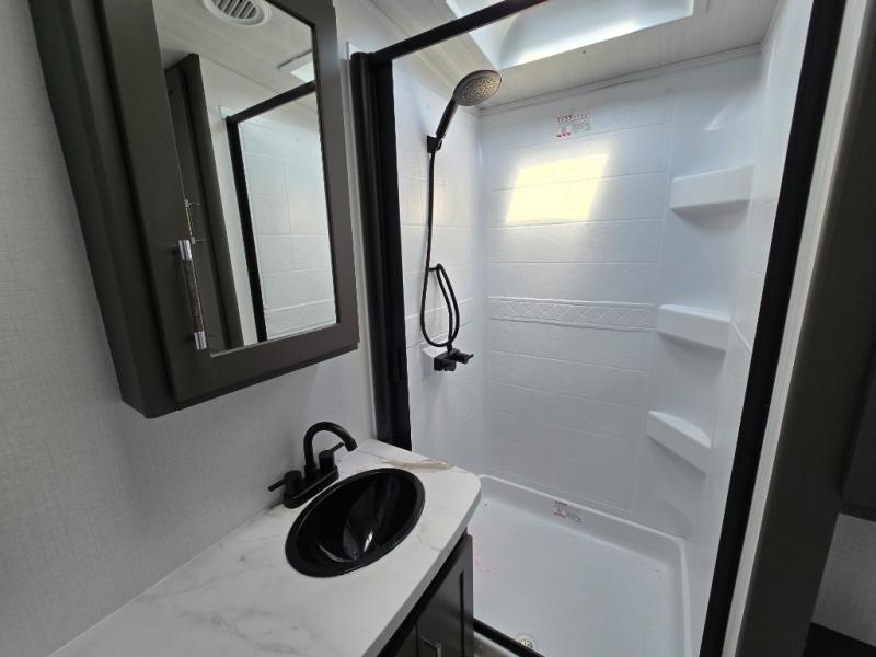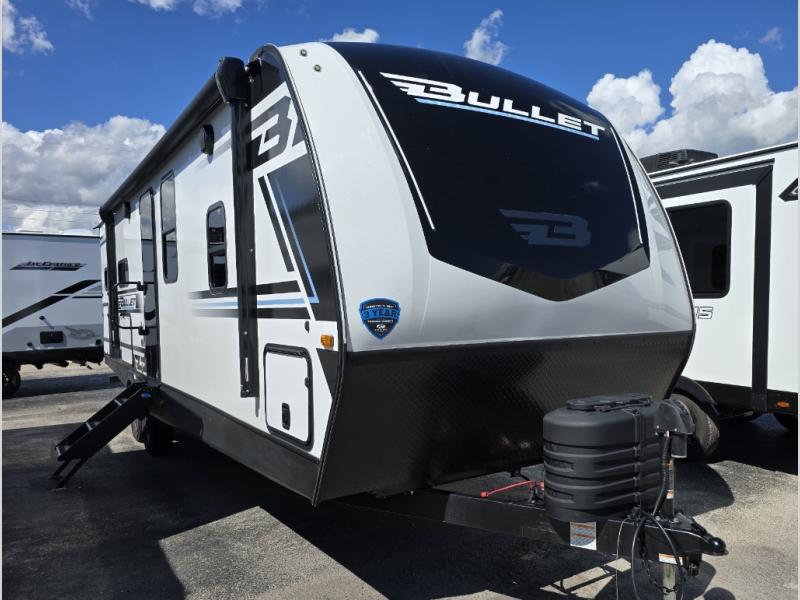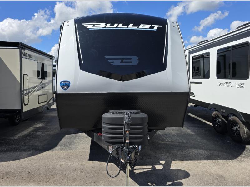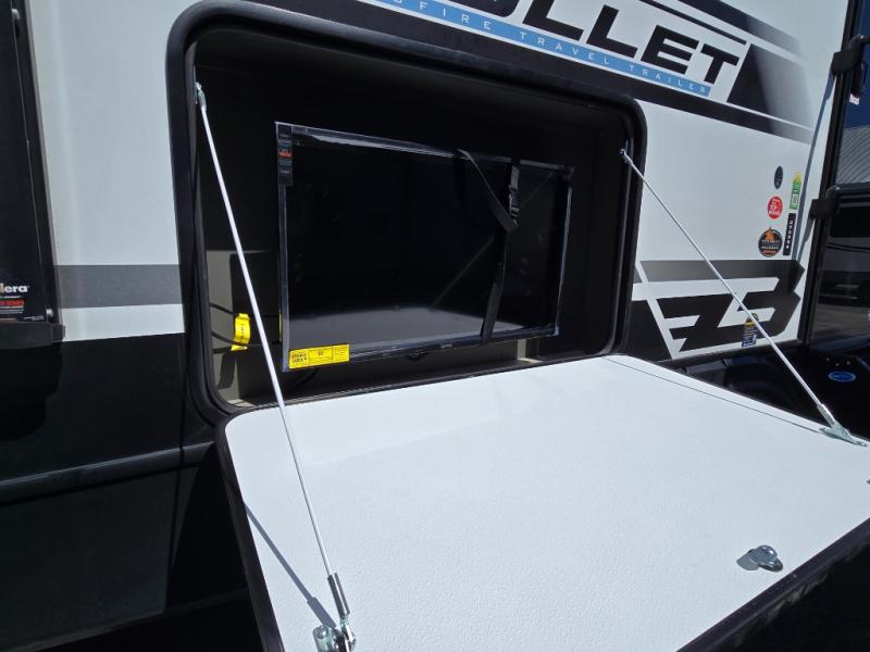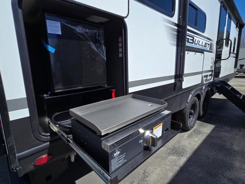 The Bullet Crossfire by Keystone are the perfect lightweight travel travel for rookie campers to seasoned RVers! Each one is built with a one-piece polypropylene underbelly, a fully walkable roof, and a high impact thermoset resin painted front cap for added durability. There is also a Dexter Torsion axle rubber ride suspension and Goodyear Endurance tires for a smooth tow plus a power tongue jack and power stabilizer jacks for easy set up. The interior will have you feeling right at home with deluxe night shades, updated Tranquil Timber decor, residential Beauflor vinyl flooring, and seamless kitchen countertops.
