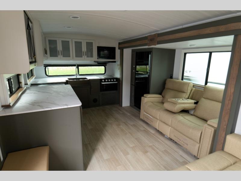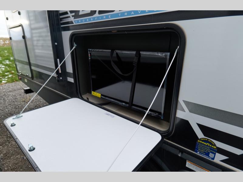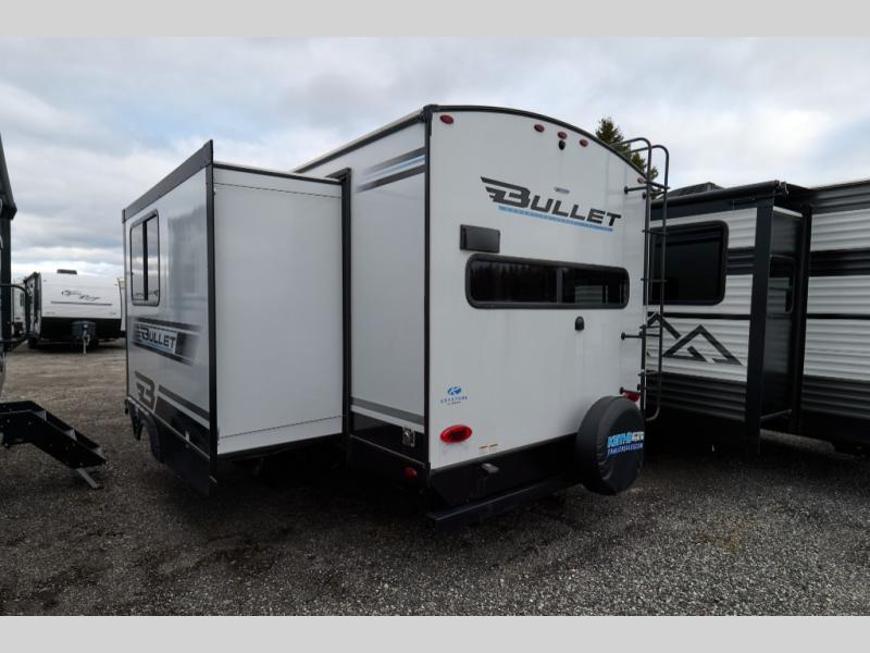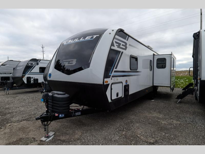 The Bullet Crossfire by Keystone are the perfect lightweight travel travel for rookie campers to seasoned RVers! Each one is built with a one-piece polypropylene underbelly, a fully walkable roof, and a high impact thermoset resin painted front cap for added durability. There is also a Dexter Torsion axle rubber ride suspension and Goodyear Endurance tires for a smooth tow plus a power tongue jack and power stabilizer jacks for easy set up. The interior will have you feeling right at home with deluxe night shades, updated Tranquil Timber decor, residential Beauflor vinyl flooring, and seamless kitchen countertops.