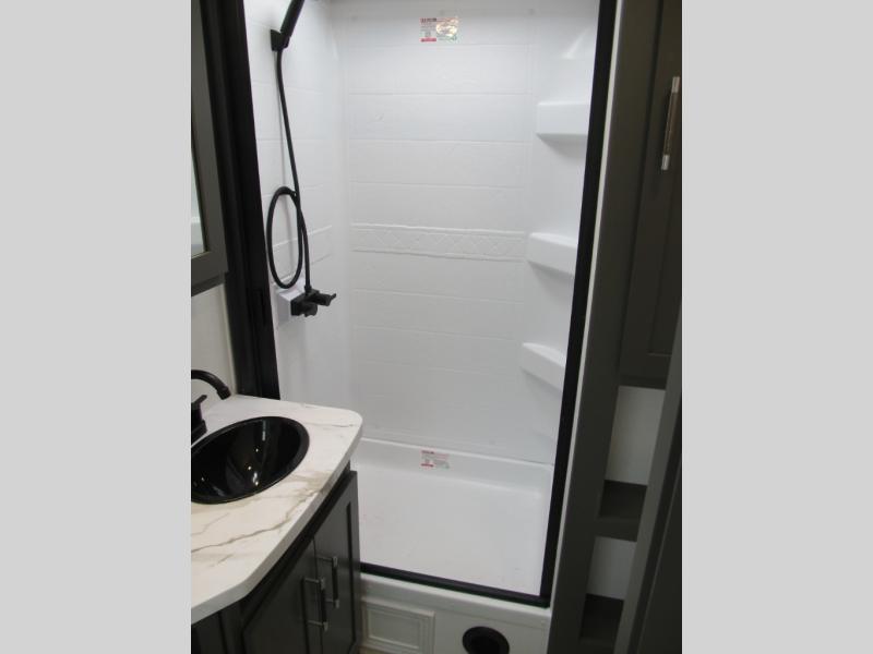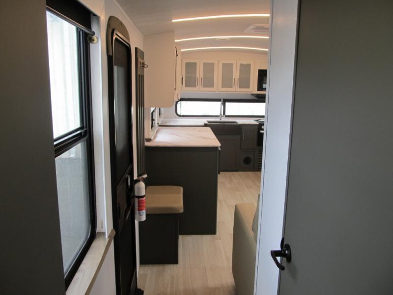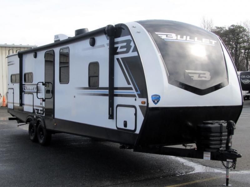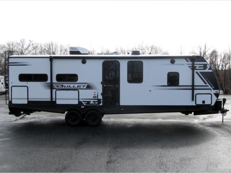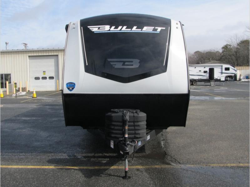 The Bullet Crossfire by Keystone are the perfect lightweight travel travel for rookie campers to seasoned RVers! Each one is built with a one-piece polypropylene underbelly, a fully walkable roof, and a high impact thermoset resin painted front cap for added durability. There is also a Dexter Torsion axle rubber ride suspension and Goodyear Endurance tires for a smooth tow plus a power tongue jack and power stabilizer jacks for easy set up. The interior will have you feeling right at home with deluxe night shades, updated Tranquil Timber decor, residential Beauflor vinyl flooring, and seamless kitchen countertops.