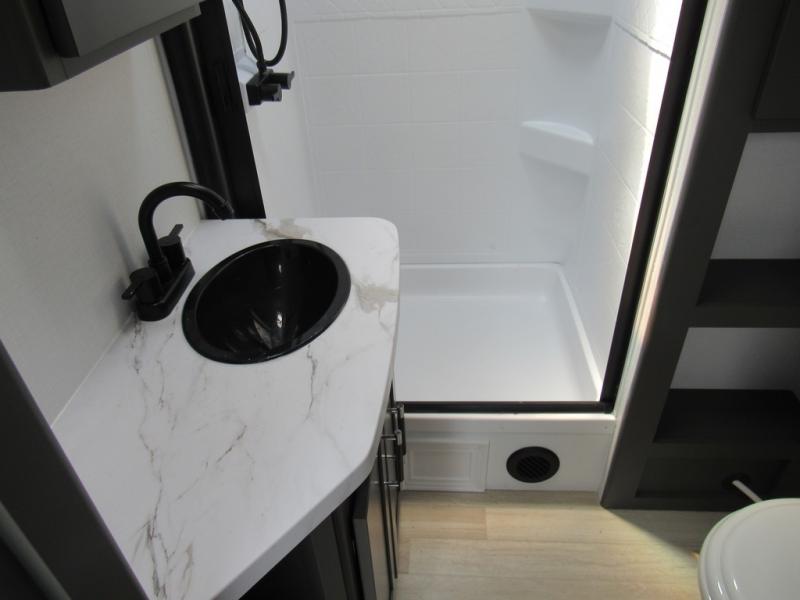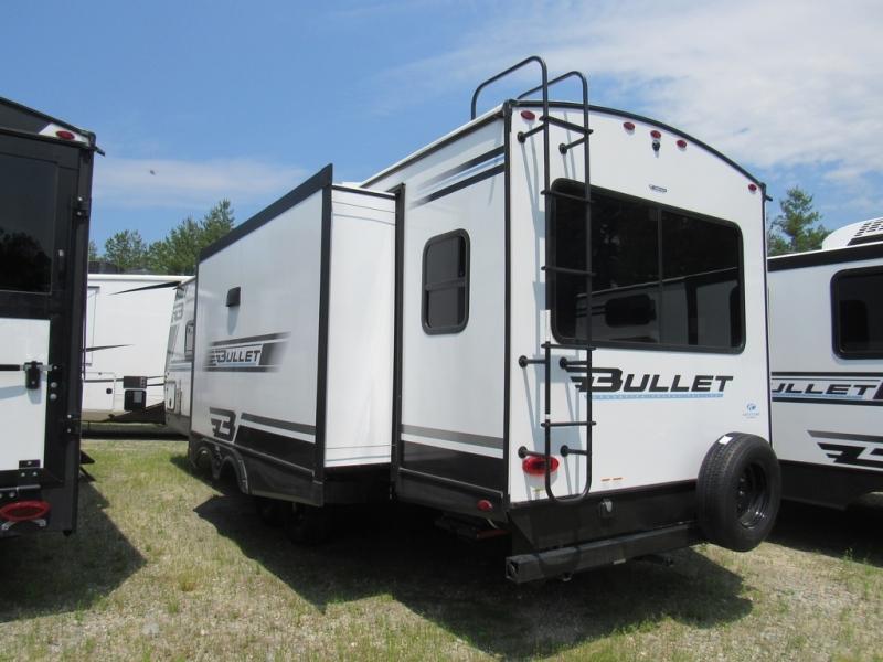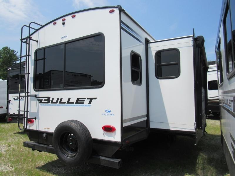 The Bullet Crossfire by Keystone are the perfect lightweight travel travel for rookie campers to seasoned RVers! Each one is built with a one-piece polypropylene underbelly, a fully walkable roof, and a high impact thermoset resin painted front cap for added durability. There is also a Dexter Torsion axle rubber ride suspension and Goodyear Endurance tires for a smooth tow plus a power tongue jack and power stabilizer jacks for easy set up. The interior will have you feeling right at home with deluxe night shades, updated Tranquil Timber decor, residential Beauflor vinyl flooring, and seamless kitchen countertops.