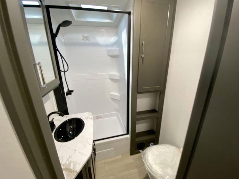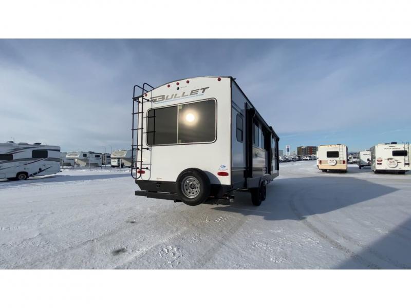 The Bullet Crossfire by Keystone are the perfect lightweight travel travel for rookie campers to seasoned RVers! Each one is built with a one-piece polypropylene underbelly, a fully walkable roof, and a high impact thermoset resin painted front cap for added durability. There is also a Dexter Torsion axle rubber ride suspension and Goodyear Endurance tires for a smooth tow plus a power tongue jack and power stabilizer jacks for easy set up. The interior will have you feeling right at home with deluxe night shades, updated Tranquil Timber decor, residential Beauflor vinyl flooring, and seamless kitchen countertops.