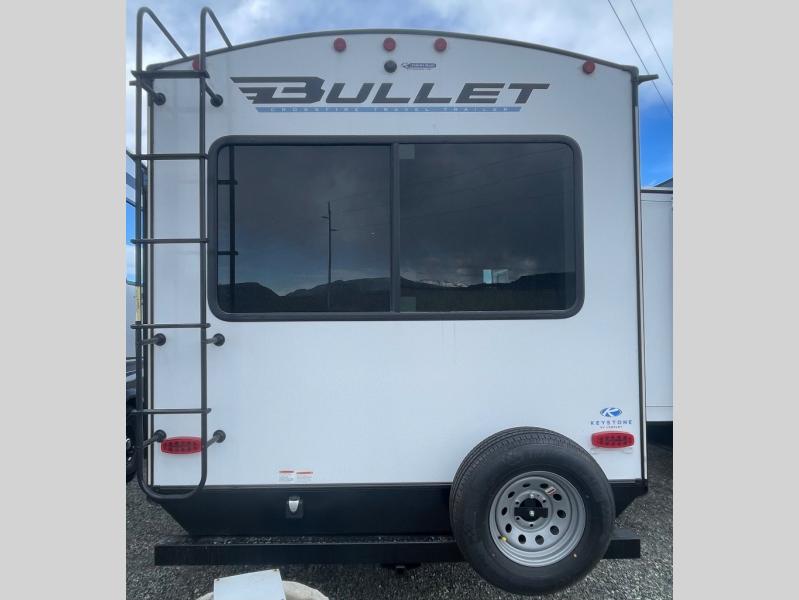 The Bullet Crossfire by Keystone are the perfect lightweight travel travel for rookie campers to seasoned RVers! Each one is built with a one-piece polypropylene underbelly, a fully walkable roof, and a high impact thermoset resin painted front cap for added durability. There is also a Dexter Torsion axle rubber ride suspension and Goodyear Endurance tires for a smooth tow plus a power tongue jack and power stabilizer jacks for easy set up. The interior will have you feeling right at home with deluxe night shades, updated Tranquil Timber decor, residential Beauflor vinyl flooring, and seamless kitchen countertops.