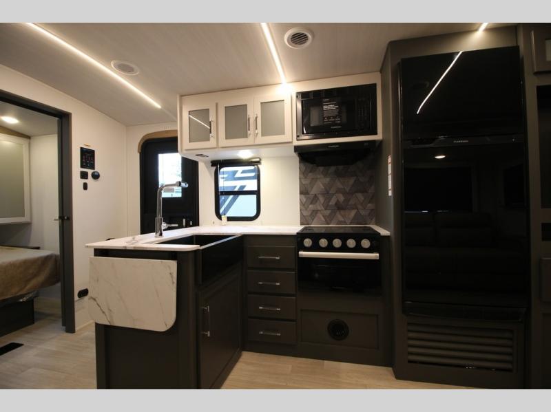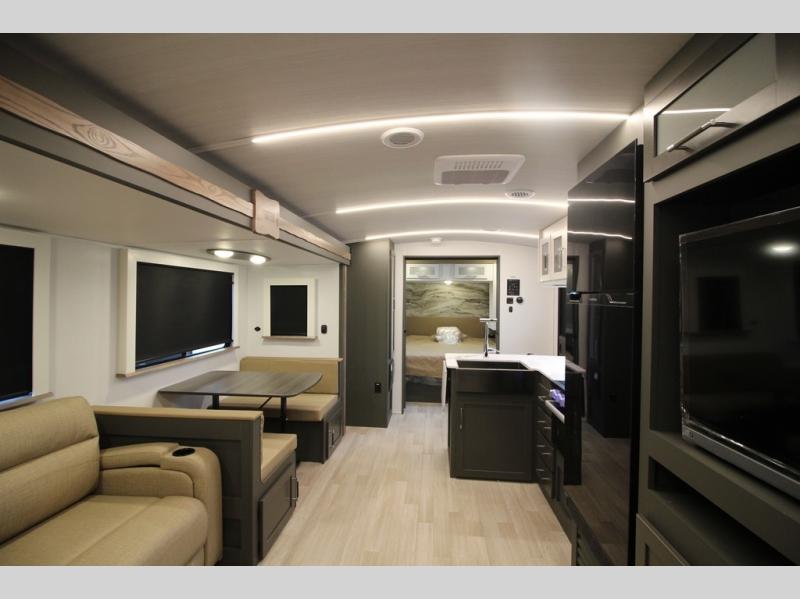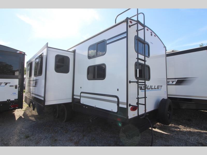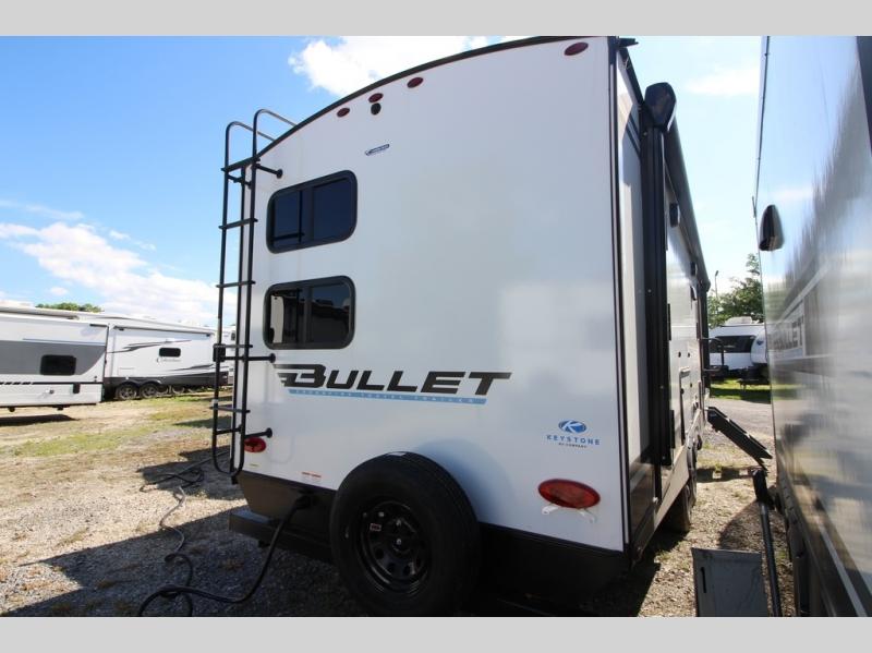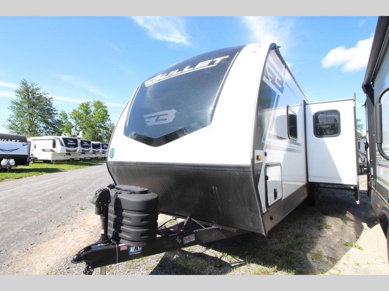 The Bullet Crossfire by Keystone are the perfect lightweight travel travel for rookie campers to seasoned RVers! Each one is built with a one-piece polypropylene underbelly, a fully walkable roof, and a high impact thermoset resin painted front cap for added durability. There is also a Dexter Torsion axle rubber ride suspension and Goodyear Endurance tires for a smooth tow plus a power tongue jack and power stabilizer jacks for easy set up. The interior will have you feeling right at home with deluxe night shades, updated Tranquil Timber decor, residential Beauflor vinyl flooring, and seamless kitchen countertops.