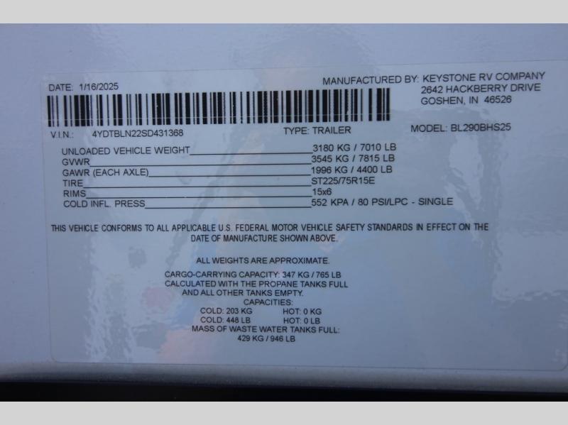 New 2025 Keystone RV Bullet Crossfire 290BHS Travel Trailer
