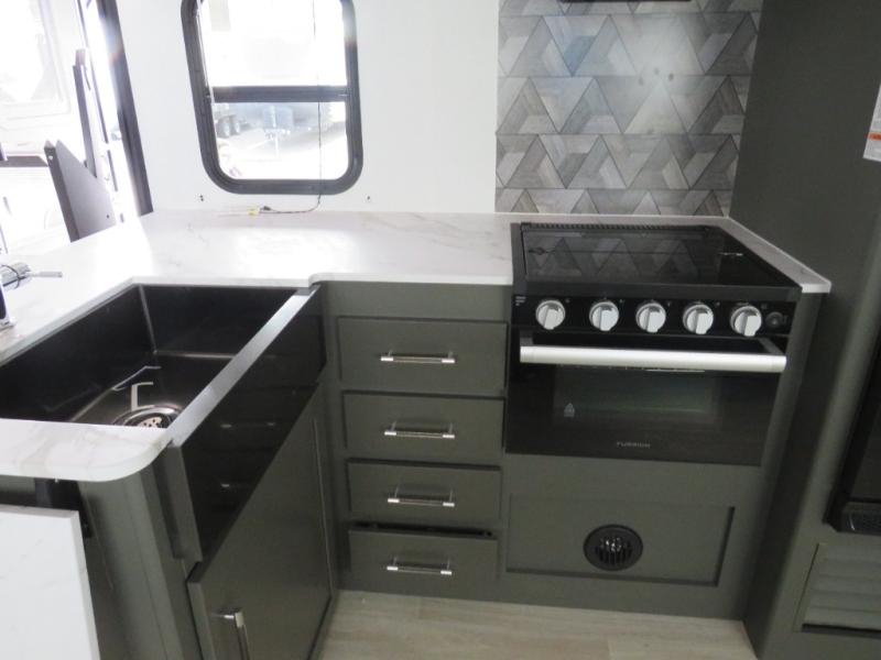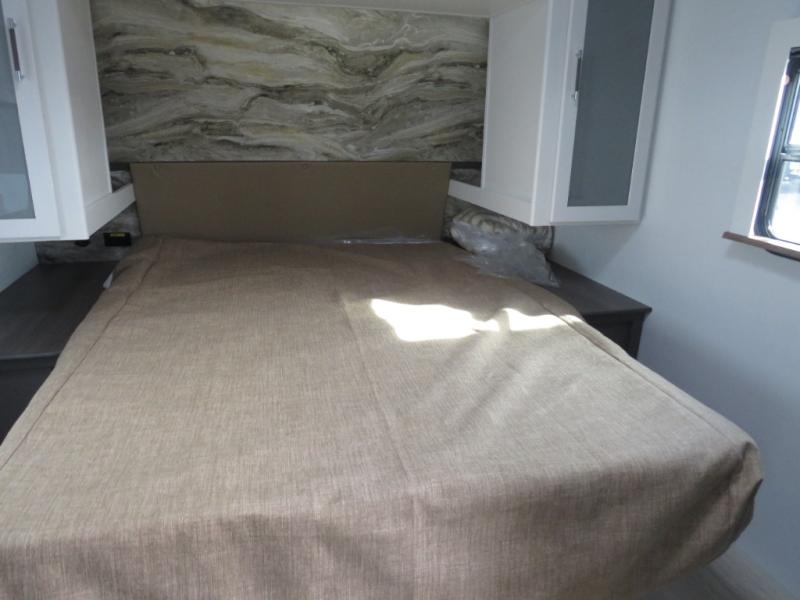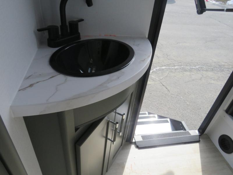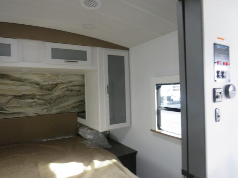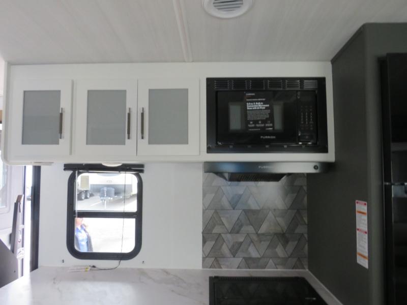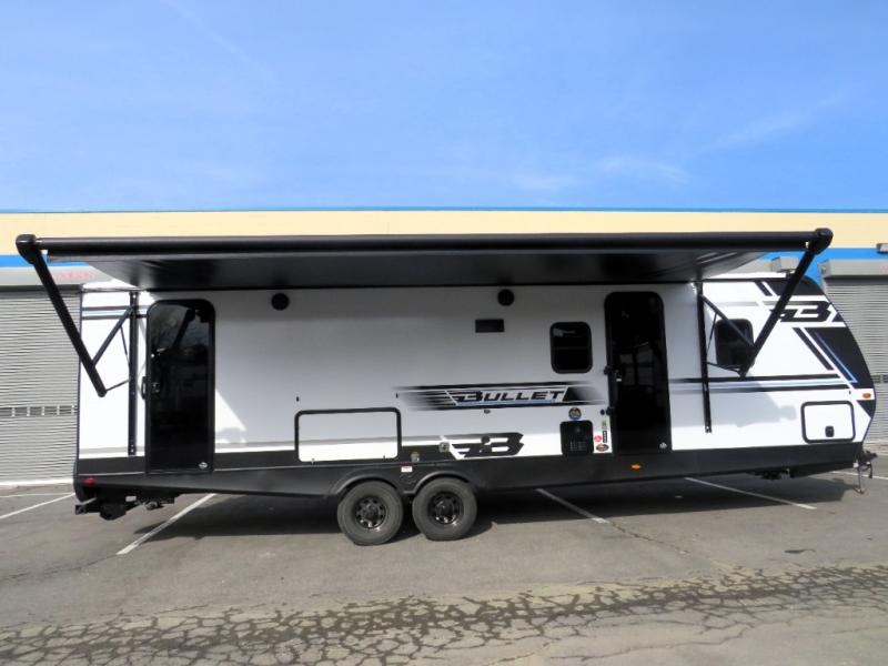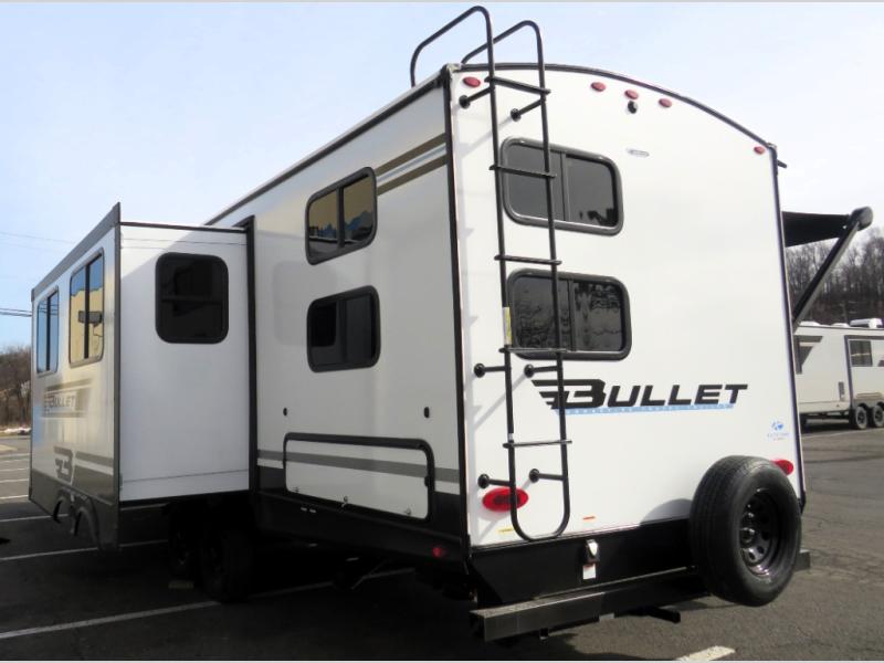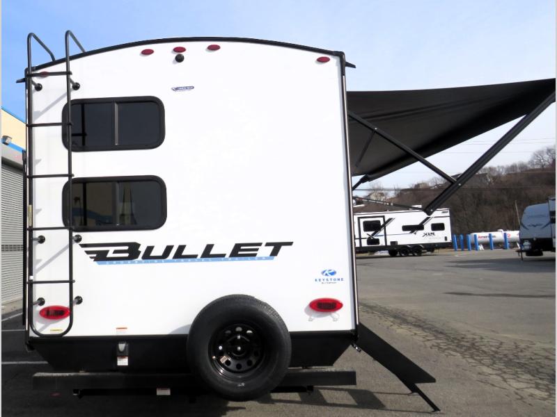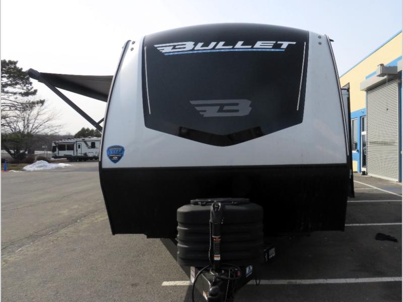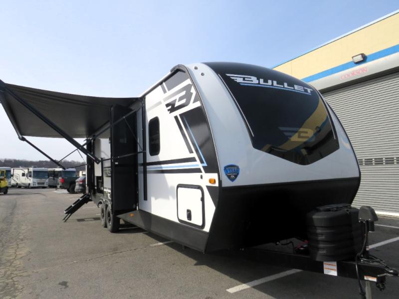 The Bullet Crossfire by Keystone are the perfect lightweight travel travel for rookie campers to seasoned RVers! Each one is built with a one-piece polypropylene underbelly, a fully walkable roof, and a high impact thermoset resin painted front cap for added durability. There is also a Dexter Torsion axle rubber ride suspension and Goodyear Endurance tires for a smooth tow plus a power tongue jack and power stabilizer jacks for easy set up. The interior will have you feeling right at home with deluxe night shades, updated Tranquil Timber decor, residential Beauflor vinyl flooring, and seamless kitchen countertops.