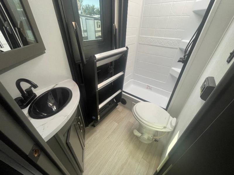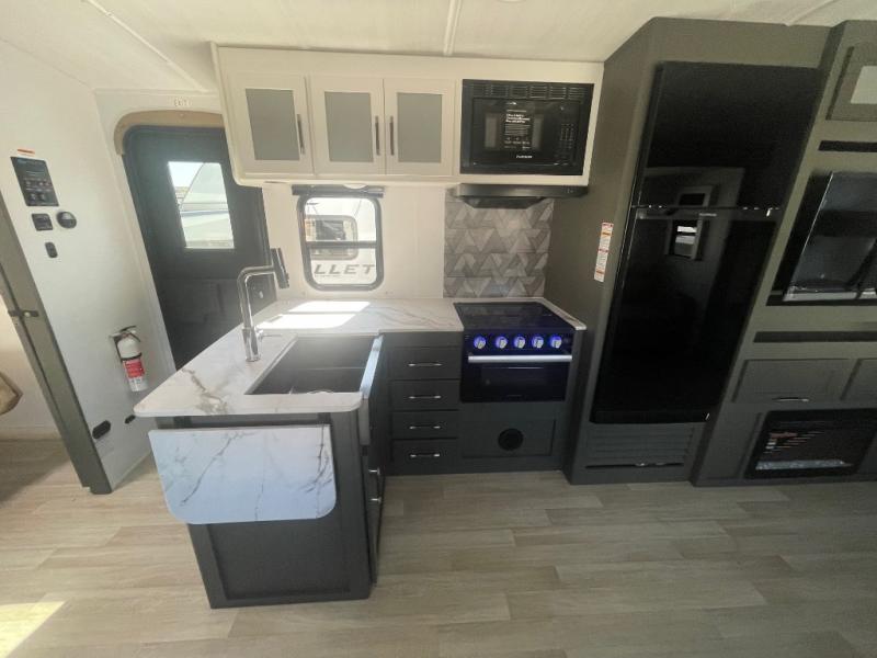 The Bullet Crossfire by Keystone are the perfect lightweight travel travel for rookie campers to seasoned RVers! Each one is built with a one-piece polypropylene underbelly, a fully walkable roof, and a high impact thermoset resin painted front cap for added durability. There is also a Dexter Torsion axle rubber ride suspension and Goodyear Endurance tires for a smooth tow plus a power tongue jack and power stabilizer jacks for easy set up. The interior will have you feeling right at home with deluxe night shades, updated Tranquil Timber decor, residential Beauflor vinyl flooring, and seamless kitchen countertops.