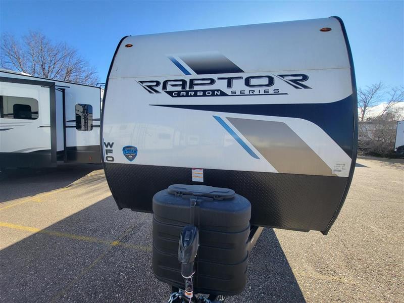 Each Raptor Carbon Series toy hauler travel trailer is built with a 10" I-beam frame, laminated sidewalls with double-welded aluminum construction, plus Dexter E-Z lube 6,000 lb. axles with self-adjusting brakes, electric stabilizer jacks for easy setup, and MORyde step above steps for stability on any type of ground you camp on. On the interior, designer style vinyl flooring throughout, pull-down window shades for privacy at night, and LED lighting throughout. You will appreciate the Girard tankless on-demand water heater for showering both inside and out, and you can also customize your trailer by adding a few options if you wish. The optional patio package will provide you with a raised outdoor living area to enjoy, and the optional SolarFlex protect 220 allows you the ability to decide how you want to camp. Choose your favorite model today!