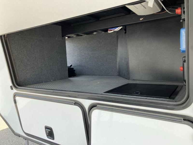 With any Keystone Raptor Carbon Series toy hauler, you will receive a rugged construction from the industry-leading patented 5,000 lb. capacity tie-downs that are welded to the frame to increase hauling safety and security, plus the Dyna Span floor decking in the garage. There is off-grid camping with the Solar Flex which delivers an affordable, high-quality RV solar energy system, and a comfortable interior with the exclusive Omni-Chill technology that offers high-efficiency air conditioning and maximum cooling. Other unexpected conveniences include soft-close hardwood cabinetry allowing you to sneak snacks without others noticing, and designer style flooring throughout for easy care and a stylish look. And each Raptor Carbon Series includes Keystone Exclusives! Now all you have to do is take charge of how you camp in a toy hauler fifth wheel or travel trailer!