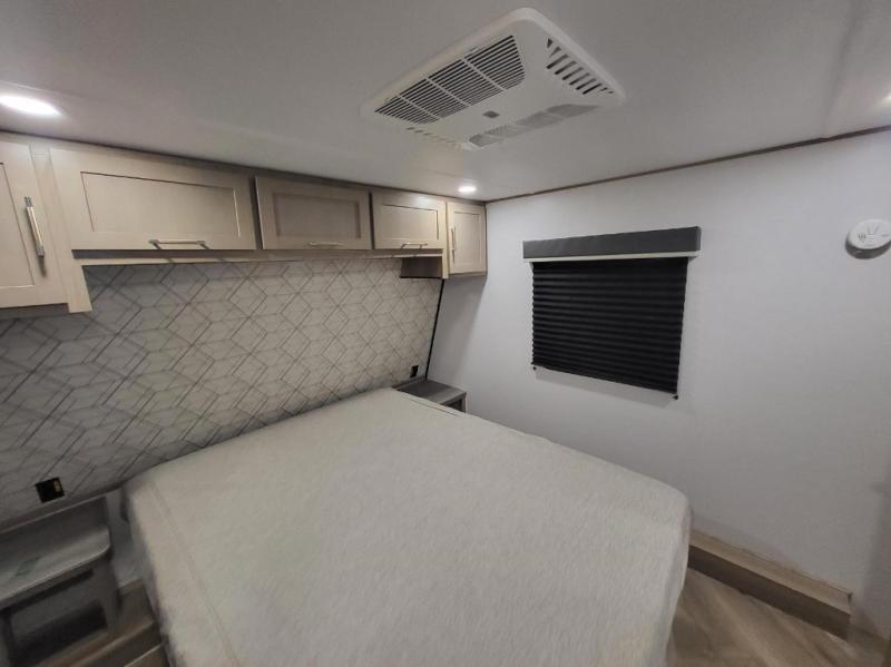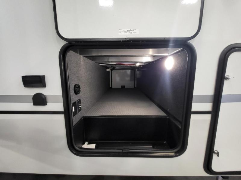With any Keystone Raptor Carbon Series toy hauler, you will receive a rugged construction from the industry-leading patented 5,000 lb. capacity tie-downs that are welded to the frame to increase hauling safety and security, plus the Dyna Span floor decking in the garage. There is off-grid camping with the Solar Flex which delivers an affordable, high-quality RV solar energy system, and a comfortable interior with the exclusive Omni-Chill technology that offers high-efficiency air conditioning and maximum cooling. Other unexpected conveniences include soft-close hardwood cabinetry allowing you to sneak snacks without others noticing, and designer style flooring throughout for easy care and a stylish look. And each Raptor Carbon Series includes Keystone Exclusives! Now all you have to do is take charge of how you camp in a toy hauler fifth wheel or travel trailer!