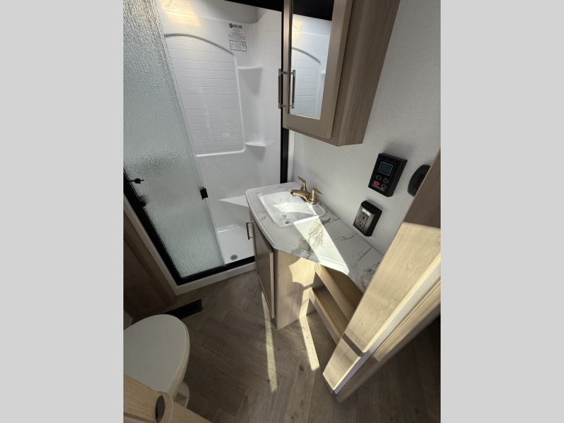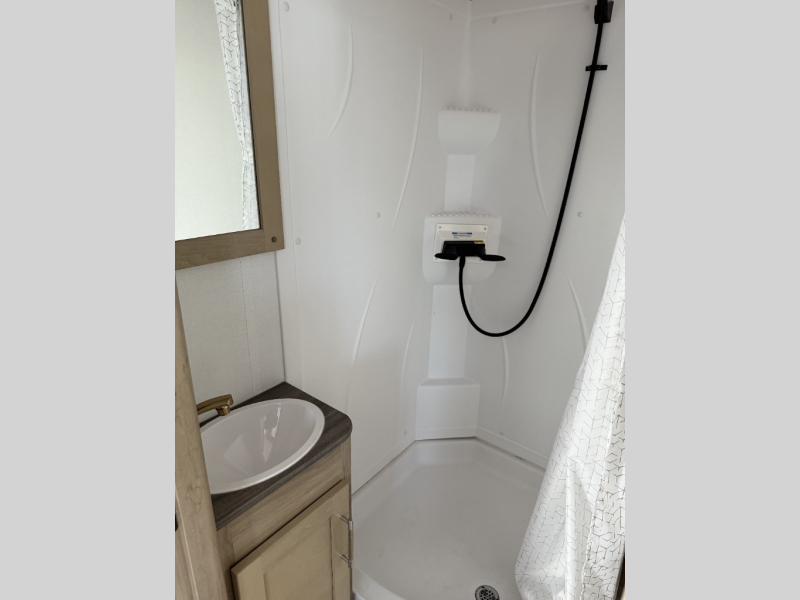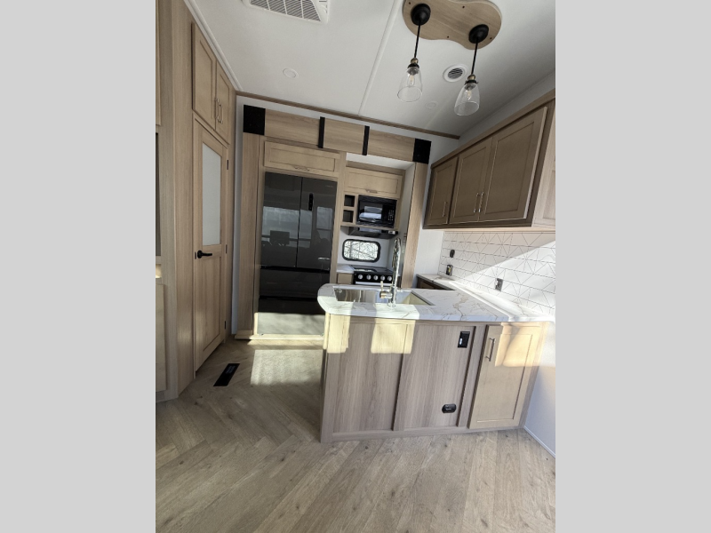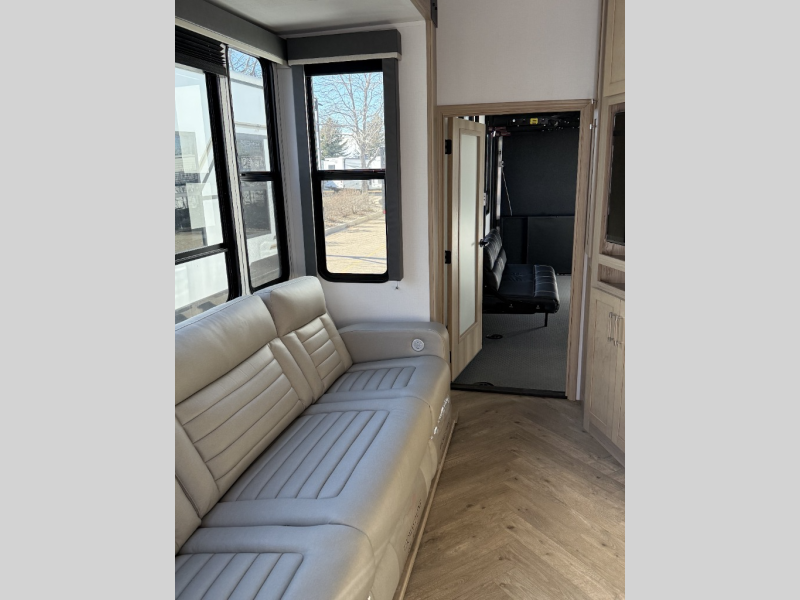 Invite the whole gang as this fifth wheel not only carries your ATV, motorcycles, and/or other outdoor toys to your destination in the 17' separate garage. The garage includes an electric bed with dual opposing sofas underneath, plus an optional second electric bed with sofas. There is also a full bath here for your guests plus washer and dryer prep! The kitchen offers a peninsula countertop with a large farmhouse style sink, appliances to whip up warm meals and heat leftovers, and a pantry to store snacks and more. There is a second full bathroom next to the front bedroom which offers a king bed, wireless phone chargers, and plenty of storage for your clothing including a slide out wardrobe. You will also enjoy a 50" LED TV with surround sound, a second pantry for all of your goodies, a 14' electric awning as well as a single 30 gallon fuel tank to keep the fun going all weekend long!