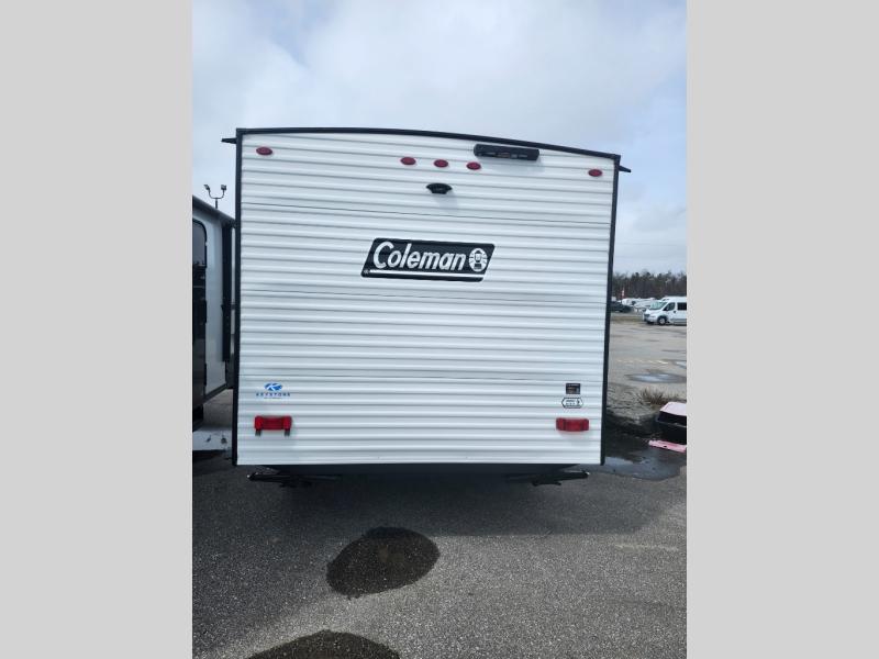 With any Coleman travel trailer, you will experience Keystone's quality throughout, plus enjoy lightweight towing to the campground or RV park. There is a walkable roof, tinted safety glass windows, and a power awning outdoors for an inviting space to relax. The friction hinge entry door is another convenience you'll appreciate, and there is Furrion backup camera prep if you want the option to make parking easier. Inside, you'll find blackout night shades, a 6' 6" ceiling height, bedside outlets, and many more comforts.