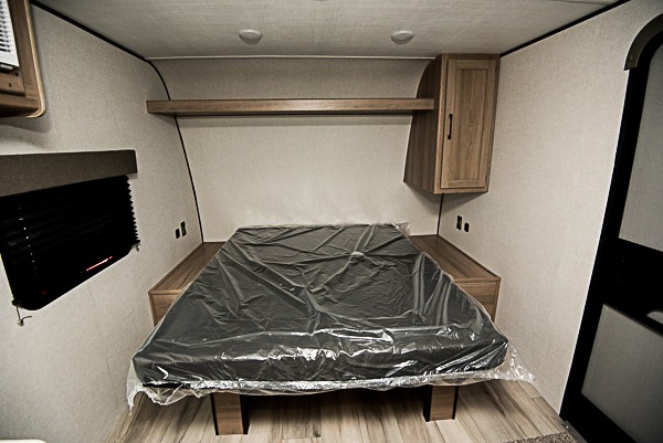 After making dinner on the two burner cooktop or microwave, you can dine at the booth dinette or outside under the 8' power awning if you brought along your camping chairs. Either way you will be comfortable and the dinette can even be converted to sleep one person if needed. After playing outdoors all day, everyone can return to get cleaned up in the full rear bath including a shower. There is even a linen closet and space for some clothes that hang. You may then fall asleep on the queen bed up front or the dinette once converted so you can start enjoying the outdoors again the next day.