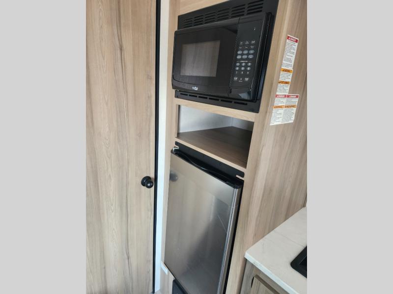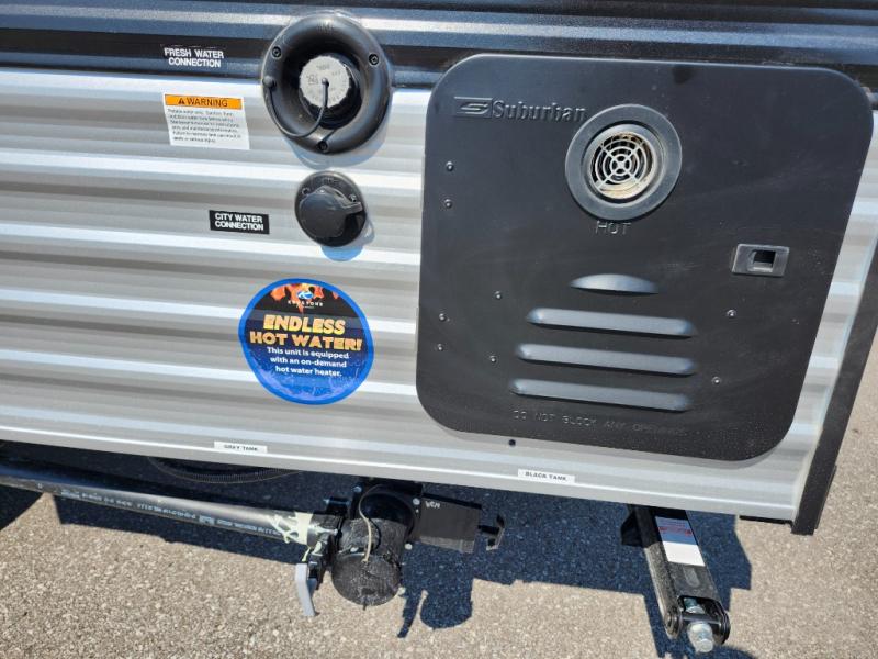 With any Coleman travel trailer, you will experience Keystone's quality throughout, plus enjoy lightweight towing to the campground or RV park. There is a walkable roof, tinted safety glass windows, and a power awning outdoors for an inviting space to relax. The friction hinge entry door is another convenience you'll appreciate, and there is Furrion backup camera prep if you want the option to make parking easier. Inside, you'll find blackout night shades, a 6' 8" ceiling height, bedside outlets, and many more comforts.