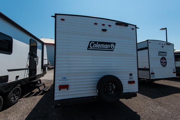 With any Coleman travel trailer, you will experience Keystone's quality throughout, plus enjoy lightweight towing to the campground or RV park. There is a walkable roof, tinted safety glass windows, and a power awning outdoors for an inviting space to relax. The friction hinge entry door is another convenience you'll appreciate, and there is Furrion backup camera prep if you want the option to make parking easier. Inside, you'll find blackout night shades, a 6' 8" ceiling height, bedside outlets, and many more comforts.