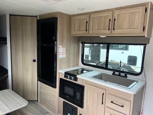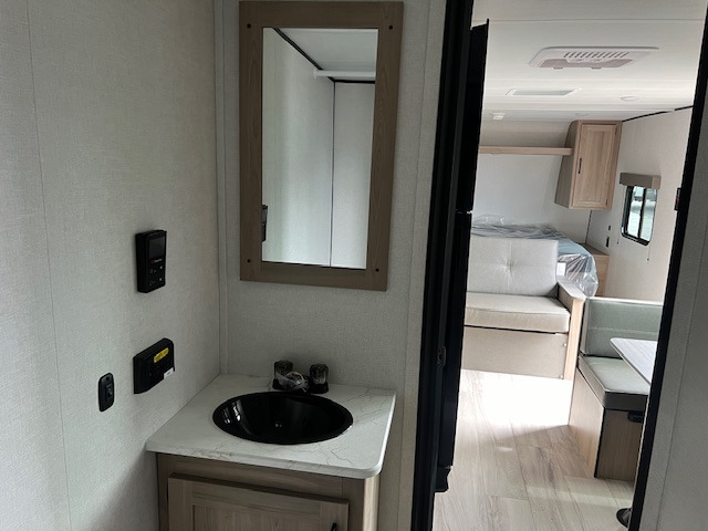 With any Coleman travel trailer, you will experience Keystone's quality throughout, plus enjoy lightweight towing to the campground or RV park. There is a walkable roof, tinted safety glass windows, and a power awning outdoors for an inviting space to relax. The friction hinge entry door is another convenience you'll appreciate, and there is Furrion backup camera prep if you want the option to make parking easier. Inside, you'll find blackout night shades, a 6' 8" ceiling height, bedside outlets, and many more comforts.