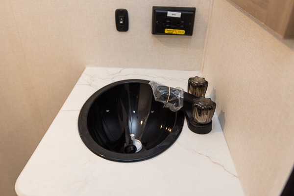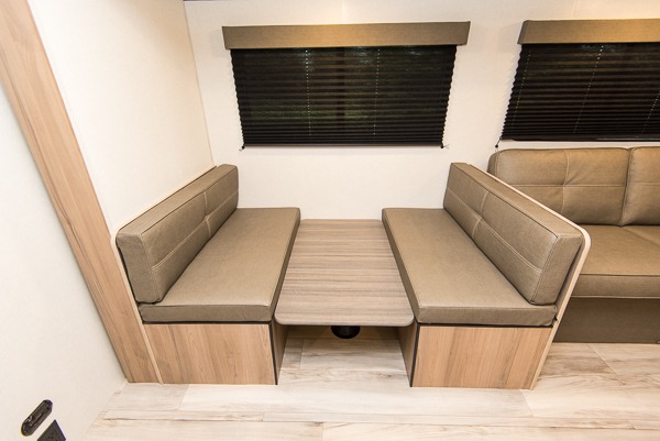 The full kitchen makes camp cooking a breeze with a two-burner cooktop, air-fryer convection microwave, and an 8 cu ft 12-V refrigerator to keep food fresh. Outside, the 16’ power awning provides shade for your campsite and there’s even storage under the bunks for fishing gear or toys. A central bathroom offers a residential tub/shower, foot-flush toilet and sink so everyone can clean up after a day on the trails.